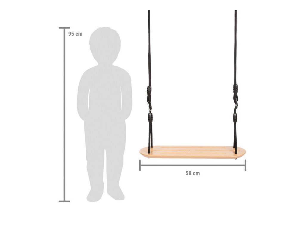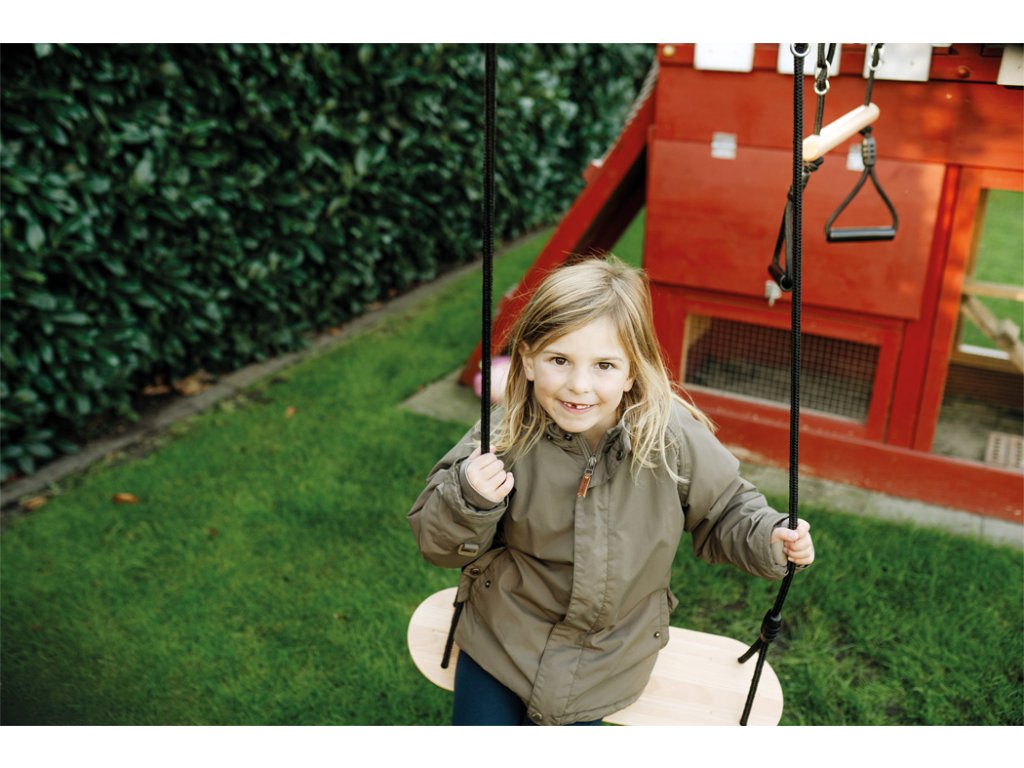 Vzlétněte vysoko do oblak. Tato prostorná houpačka ze dřeva je klasická houpačka, která vyniká kvalitním vzhledem díky přírodnímu dřevu v kombinaci s černými lany. Robustní lana jsou výškově nastavitelné. Kovový kroužek umožňuje houpačku rychle zavěsit i sundat. Je vyrobena z robustního masivního dřeva a lana z materiálu odolného vůči povětrnostním vlivům, vhodná do interiéru i exteriéru.Díky velké sedací ploše a nosnosti je ideální i pro dospělé. Trénuje ovládání těla, sílu a obratnost. Kdo se dokáže rozhoupat nejvýše? Drážky na povrchu sedáku zajišťují, že je houpačka protiskluzová a bezpečná. Hlavní vlastnosti: nastavitelná lanaz materiálu odolného vůči povětrnostním vlivůmtrénuje ovládání těla, sílu a rovnováhuzábava vhodná pro hraní doma i venkuSizing info