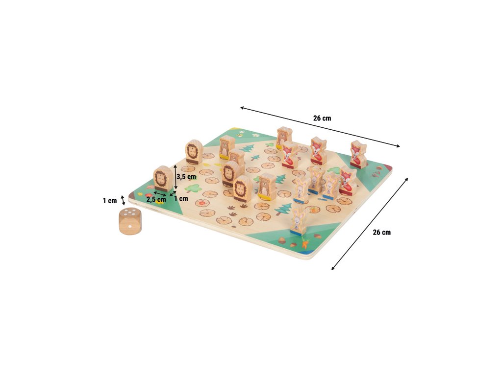 Hoďte kostkou, hýbejte figurkami a užijte si spoustu zábavy se zvířaty!Tato propracovaná hra Člověče, nezlob se přináší oblíbenou klasiku v okouzlující zvířecí podobě. Medvěd, liška, ježek nebo králík, tyto láskyplně navržené dřevěné figurky zvou děti ke hře, při které se hravou formou učí počítat a zároveň rozvíjejí jemnou motoriku. V této verzi hry mohou proti sobě soutěžit až čtyři hráči a posouvat své figurky po kvalitně potištěné herní desce s motivy divokých zvířat. Součástí hry je extra velká dřevěná kostka, ideální pro malé dětské ručičky, která podporuje rané počítací dovednosti. Robustní dřevěné figurky se snadno uchopují, jsou odolné a navržené s ohledem na potřeby dětí. Díky modernímu designu s viditelnou kresbou dřeva a vysoké kvalitě zpracování se tato hra stane oblíbenou součástí v každém dětském pokoji a nabídne dlouhé hodiny společné zábavy. Hlavní vlastnosti: Člověče, nezlob se s figurkami ve tvaru zvířatklasická desková hra pro 2 - 4 hráčeextra velká dřevěná kostka - ideální pro malé dětské ručičkyhravě podporuje počítání a jemnou motorikuvyrobeno z robustního dřeva s vysoce kvalitním potiskem a viditelným podílem dřevavhodné pro všechny věkové kategorie - zábava pro celou rodinuSizing info