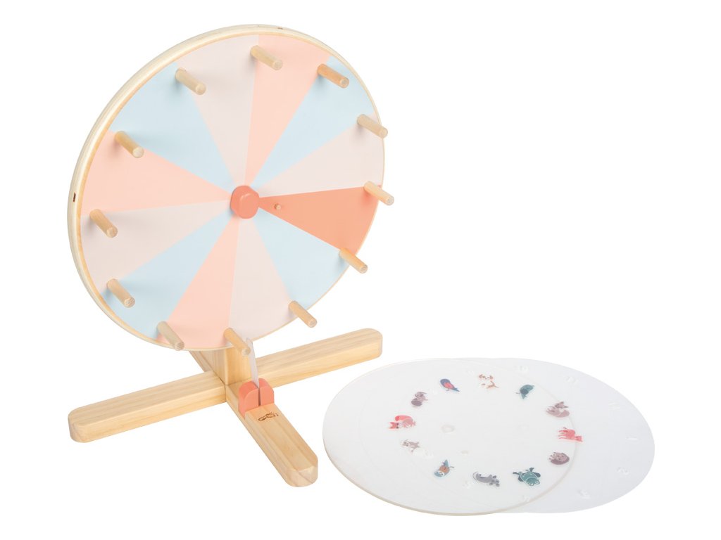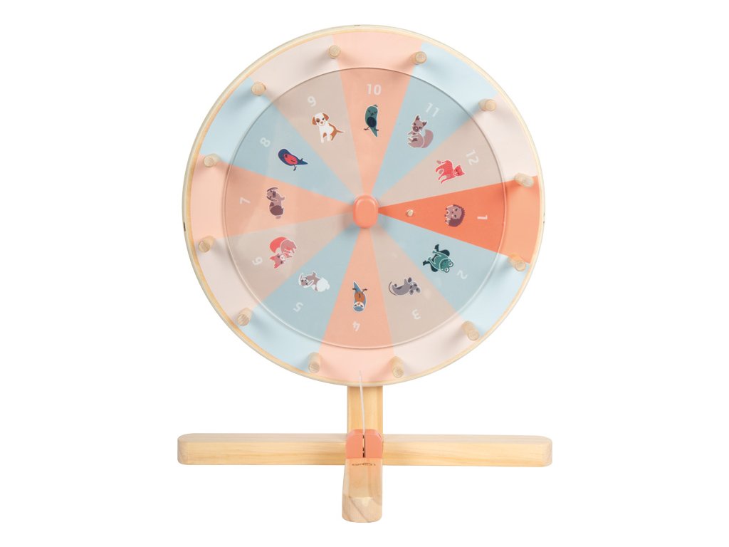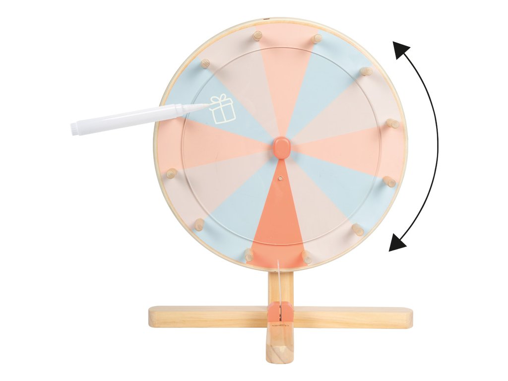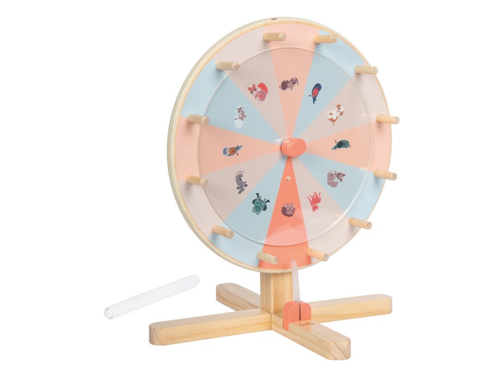 Speciální zábava s veverkou, ježkem, ptáčkem, myší, žábou, psem, kočkou a králíčkem kombinuje atraktivní design s mnohostranným využitím! Kolo štěstí je vyrobeno z robustního dřeva s plastovým popisovacím panelem a nabízí spoustu smíchu a vzrušení, ať už se používá ve školce, na dětské narozeninové oslavě či jen tak pro zábavu. Je dodáváno se dvěma vyměnitelnými kotouči s roztomilými motivy zvířat a s čísly od 1 do 12. Na plastový kotouč se dá psát a kreslit mazatelným fixem. Můžete jej využít jako tombolu, pro soutěže ve školce nebo jako zpestření dětské narozeninové oslavy. Díky jednoduchému ovládání a možnosti upravit si ho podle libosti, dělá z tohoto kola štěstí skvělý nástroj pro jakoukoliv příležitost. Kolo štěstí můžete doplnit dalšími hrami z produktové řady Garden Buddies, které nabízejí spoustu zábavy a pohybu. Hlavní vlastnosti: popisovací plastový panel, 2 vyměnitelné kotouče, popisovačpřenosné, vhodné pro umístění na stolemnohostranné využitísoučást produktové řady Garden BuddiesSizing info