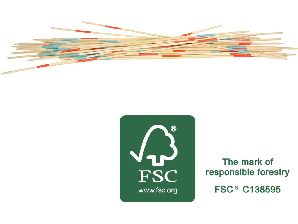 Při této hře budete muset mít pevnou ruku! XXL mikádo trénuje koordinaci ruka-oko, soustředěnost a trpělivost. Hráči musí hůlky vyrobené ze 100% certifikovaného FSC® dřeva vytáhnout z hromádky bez toho, aby pohli jinými hůlkami. Každá hůlka má proužky jiné barvy a počtu, takže má každá jinou bodovou hodnotu. Nesmrtelná klasika, kterou můžete hrát venku i doma. Hlavní vlastnosti: vyrobené ze 100% certifikovaného FSC® dřeva Značka a certifikát FSC® (Forest Stewardship Council) zaručuje, že dřevo, ze kterého byl produkt vyroben, nebylo vytěženo nelegálně a pochází z lesů obhospodařovaných šetrným či přírodě blízkým způsobem, ve kterém jsou dodržovány přísné environmentální a sociální požadavky. Značka FSC® na výrobku znamená, že svým nákupem pomáháte chránit lesy a podporujete šetrné, odpovědné či přírodě blízké hospodaření, díky kterému jsou naše lesy stabilnější, zdravější, mají přirozenou druhovou skladbu a lépe odolávají negativním následkům klimatických změn.Sizing info
