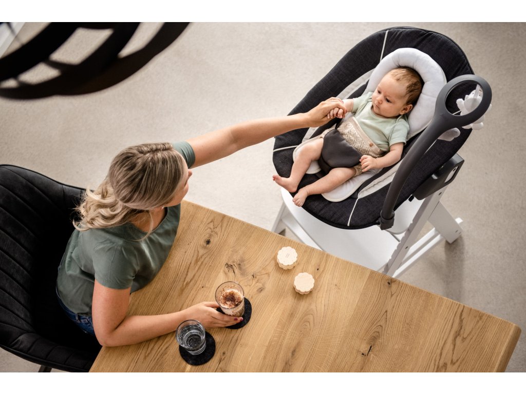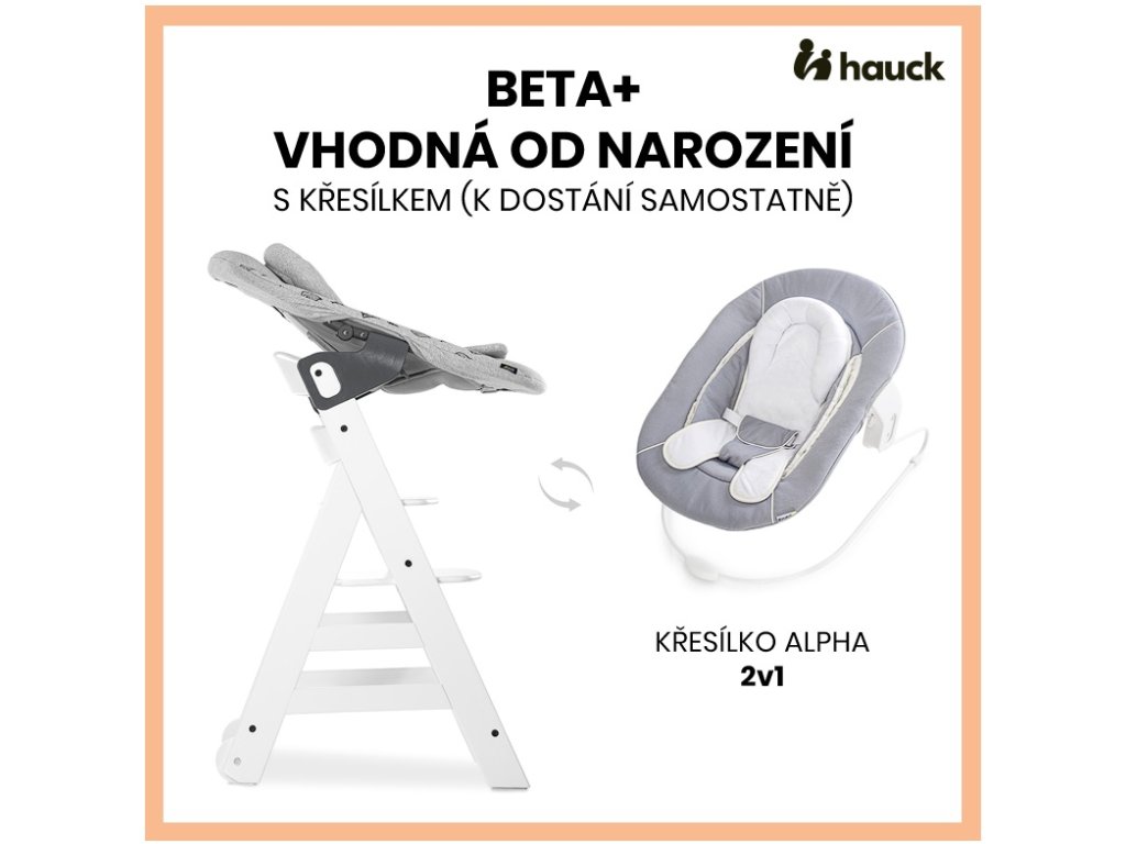 VHODNÁ JIŽ OD NAROZENÍ PŘI POUŽITÍ KŘESÍLKA (DOSTUPNÉ SAMOSTATNĚ) // V kombinaci s křesílkem 2v1 můžete jídelní židličku Beta+ používat již od narození. Křesílko je možné použít jako nástavec na židličku nebo při použití rámu jako samostatné křesílko.