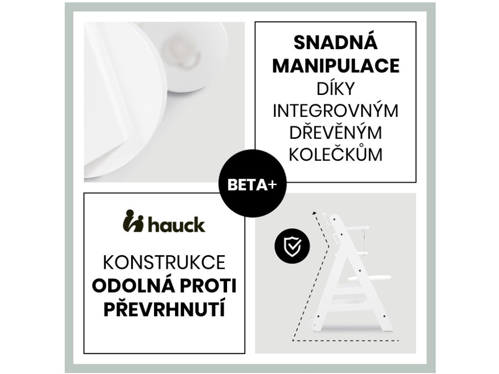 Jídelní židlička Beta+ je vyrobena z evropského bukového dřeva pocházejícího z lesů s certifikátem FSC®, který oceňuje trvale udržitelné a ekologické lesní hospodaření na ochranu rostlin a zvířat. Díky stabilní konstrukci s integrovanými kolečky a podlahovými kluzáky je Beta+ mimořádně odolná proti překlopení.