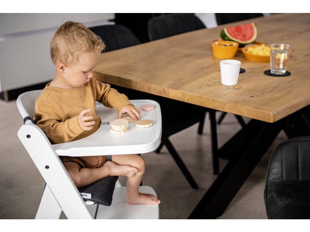 Prostorný dřevěný tác poskytne dostatek místa jak pro stolování tak pro hraní, případně lze tác vyměnit za praktický ochranný oblouk. Polstrování, které je součástí, poskytuje vašemu děťátku dostatek pohodlí při sezení, stolování či hrách.