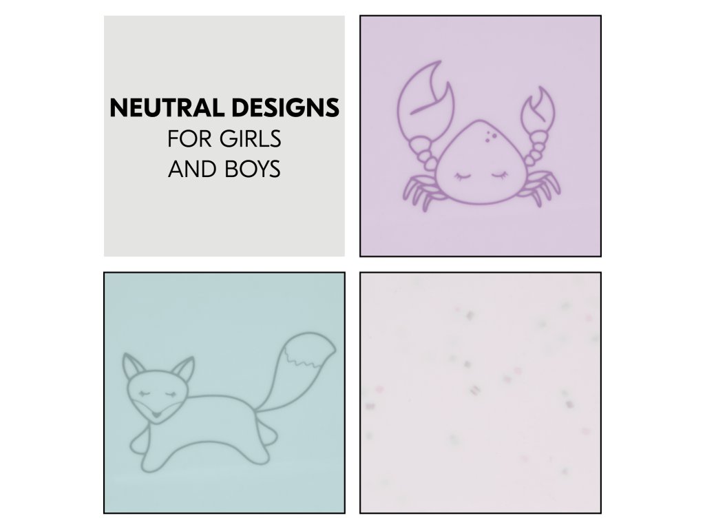 Měkký, pružný silikon vhodný pro potraviny je testován podle LFGB a je bezpečný pro zdraví vašeho dítěte. Zaoblené rohy podložky pro větší bezpečnost.