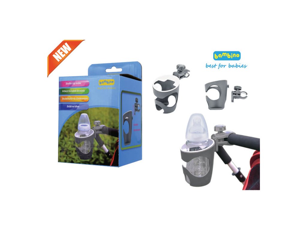 Praktický držák na nápoje, který se jednoduše připojí ke kočárku. Klip je vhodný pro většinu tvarů a průměrů trubek na kočárcích a bicyklech.- měkké plastové zarážky uvnitř držáku zajišťují pevné uchycení různých druhů lahviček