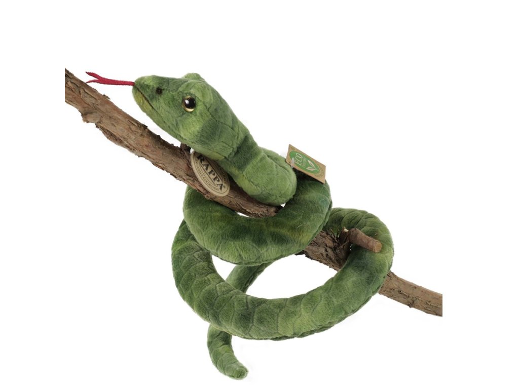Plyšový had zelený o délce 90 cm je ručně ušitý z vysoce kvalitního jemného plyše, a díky tomu vypadá jako živý. Tento plyšový kousek je ideálním dárkem pro všechny milovníky heboučkých plyšáků. Je součástí exkluzivní kolekce plyšových hraček značky RAPPA. Hlavní vlastnosti: realistické zvířátkoruční zpracovánívysoce kvalitní plyšECO-FRIENDLY výplň Co to vlastně ECO‑FRIENDLY znamená? Výplň plyšové hračky je vyrobena z recyklovaných PET lahví. Tento materiál je zcela bezpečný, na omak nerozeznatelný od standardní výplně a plně atestovaný pro bezpečnost i těch nejmenších. Rozhodli jsme se jít zelenou cestou co nejméně zatěžující životní prostředí – cestou ECO‑FRIENDLY.Sizing info