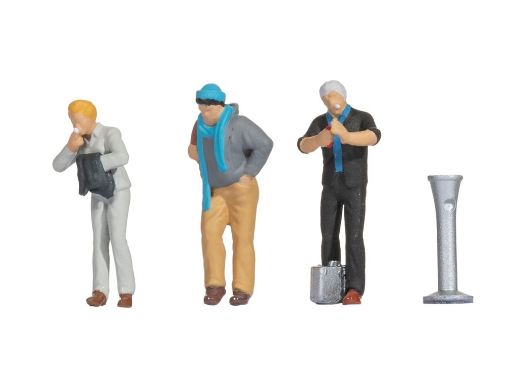Scéna Pauza na cigaretu přináší do modelového světa moment, který známe z každodenního života. Muž v obleku s aktovkou, pohodář v mikině s kapucí a uvolněný kuřák si dopřávají krátkou přestávku a zapalují si cigaretu. Celou scénu doplňuje popelník, který jí dodává na autentičnosti. Ideální doplněk na místo určené ke kouření v modelové scenerii. Hlavní vlastnosti: jedná se o model, nejedná se o hračkuručně kolorovánovhodné od 14 letměřítko H0Sizing info