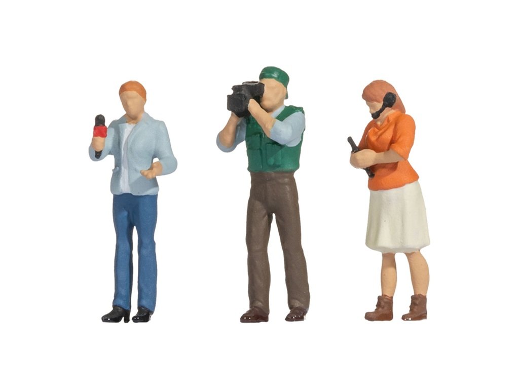Se scénou Reportéři dokonale oživíte své modelové město! Tato skupinka figurek zobrazuje profesionální tým novinářů přímo při práci: reportérka mluví do mikrofonu a živě komentuje dění, zatímco kameraman soustředěně natáčí každý detail. Další postava si zapisuje poznámky, aby žádná informace neunikla. Tato dynamická scéna se skvěle hodí k městskému prostředí, na náměstí, k simulaci událostí nebo třeba jako doplněk k větší akci. Přinese do vaší scenerie autentičnost, pohyb a špetku mediálního ruchu. Všechny figurky jsou pečlivě propracované a plné života. Hlavní vlastnosti: jedná se o model, nejedná se o hračkuručně kolorovánovhodné od 14 letměřítko H0Sizing info