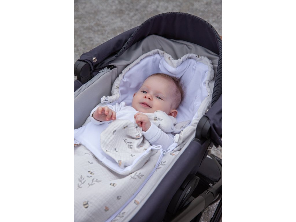 Malý letní fusak pro novorozené miminko s využitím do cca 8 měsíců. Rozměr fusaku je ideální pro použití do korbiček hlubokého kočárku a je vhodný také do autosedaček.