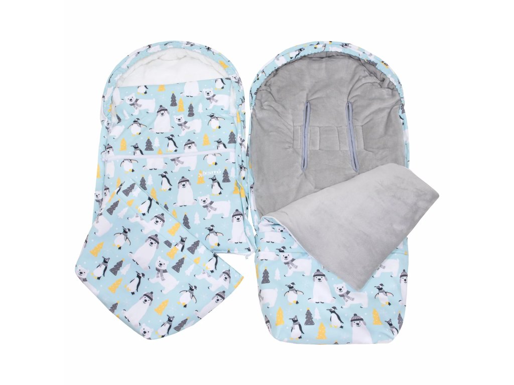 - Celoplošné venkovní krytí zipů. - Oblouk s límcem okolo hlavy pro snazší udržení tepla. - Silný protiskluz proti posunu fusaku v kočárku. - Velké UNI otvory pro bezpečnostní pásy připnete i velké spony. - Reflexní prvky pro větší bezpečnost. - Velká kapsa na zip v přední části fusaku na plenku, dudlík apod. - Barevný sublimační potisk Softshellu v moderní mintové barvě s lednímy medvědy. Tepelný komfort a snadná regulace teploty Díky hřejivému materiálu mikroplyš Magna, která vyniká svým objemem v té nejvyšší kvalitě, poskytuje dostatečný tepelný komfort i těm nejmenším miminkům. Pobyt venku je pediatry doporučen do max. -5 °C, u starších dětí do max. -10 °C. Fusak Soft UNI Lední medvědi obstojí teplotně s přehledem do -10 °C. Předpokládáme také, že maminka své miminko vhodně obleče. Fusak je vybaven zipy kolem dokola. Díky tomu je umožněná snadná regulace teploty. Vrchní díl lze v případě potřeby zcela odejmout. Způsoby využití: V hlubokém kočárku, ve sportovním kočárku, v přenosné tašce pro dítě, na sáňky. Nastavitelná délka a šířka zimního fusaku. Délka zimního fusaku je 110 cm, tato délka je vyhovující i pro větší děti, po odepnutí spodního nánožníku je fusak zkrácen na 86 cm, délka vyhovující pro malé děti. Rozměry: - Zkrácená verze (DxŠ) 86 x 49 cm pro klasický kočárek s korbičkou a autosedačku. - Prodloužená verze (DxŠ) 110 x 49 cm pro sportovní verzi kočáru. - Při rozepnutí jako teplá podložka (DxŠ) 86 x 57 cm. Materiál: - vnější: Softshell - voděodolný materiál s paropropustnoou membránou a zvýšenou odolností proti oděru, velmi dobře dýchá, má vynikající termoizolační vlastnosti. Odolnost proti vodě 8.000 mm/24h, paropropustnost 3.000 g/m2/24h. Softshell je 3 vrstvý materiál, zátěr TPU, a hřejivý fleece. - vnitřní: 100% polyester, Magna 380 g/m2 - super kvalitní mikroplyš. - vnitřní nánožník: šusťák - 100% PES - výplň: 100% polyesterové duté vlákno 300 g/m2 s vynikající tepelnou izolací a tvarovou stálostí - zipy: vysoce kvalitní zipy Bezpečnost: - Uni otvory na 5-ti bodové bezpečností popruhy. - Spodní otvory je nutné prostřihnout nůžkami z manikúry, nesmí se přestříhnout nitě, kterými je dírka obšitá, došlo by k párání nití. - Reflexní potisk fusaku ve formě loga ESITO. - Fusak je opatřen velmi kvalitním protiskluzem proti posunu fusaku v kočárku. Výhody: - Největší předností je možnost kompletního odepnutí celého vrchního dílu fusaku i přídavné prodlužovací části. - Spodní díl může sloužit jako výhřevná podložka (vložka) do kočárku, nebo sedátko pro maminku. - Odepínací nadstavba fusaku se uvnitř vyznačuje snadnou údržbou díky omyvatelnému šusťáku. - Okolo hlavičky je vytvořena dokonalá tepelná ochrana. - Velká kapsa na zip v přední části fusaku, do které můžete ukládat náhradní plenu, dudlík apod. - Zimní fusak je plně rozepínatelný což umožňuje vyprat pouze ušpiněný díl fusaku, celkem jsou 3 díly. - Univerzální rozměry jsou takové, aby fusak pasoval do naprosté většiny kočárků. - Nové a dokonalejší krytí zipů fusaku a velmi kvalitní značkové kostěné zipy. Údržba: - Před prvním použitím fusak vyperte, dle návodu u fusaku - Praní v pračce při teplotě 30°C, rozepnutý na jednotlivé díly. - Použití sušičky je povoleno pouze s programem za studena. - Po vyprání je třeba jednotlivé díly fusaku rozklepnout pro opětovné nadýchání chlupu. - Pro zachování nepromokajících vlastností zásadně nepoužívat žádnou aviváž. - Ideální prací prostředek: jakýkoliv na funkční materiály. Kvalitní český výrobek! Vyrobeno s láskou k dětem v podhůří Orlických hor.Doplňkové parametry