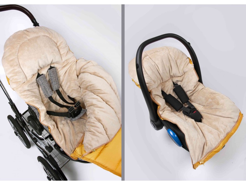 Tento výrobek lze doplnit o rukávník a kožíšek na kočárek ve stejné barvě kožešiny.