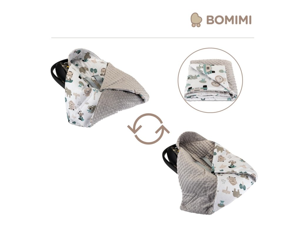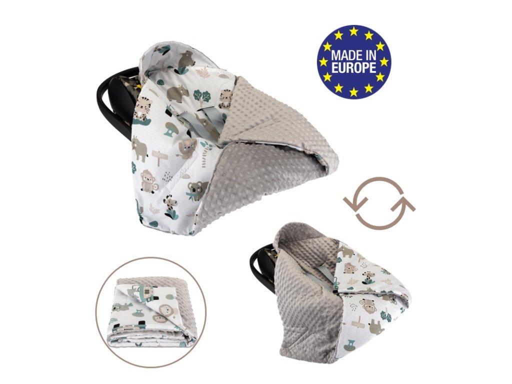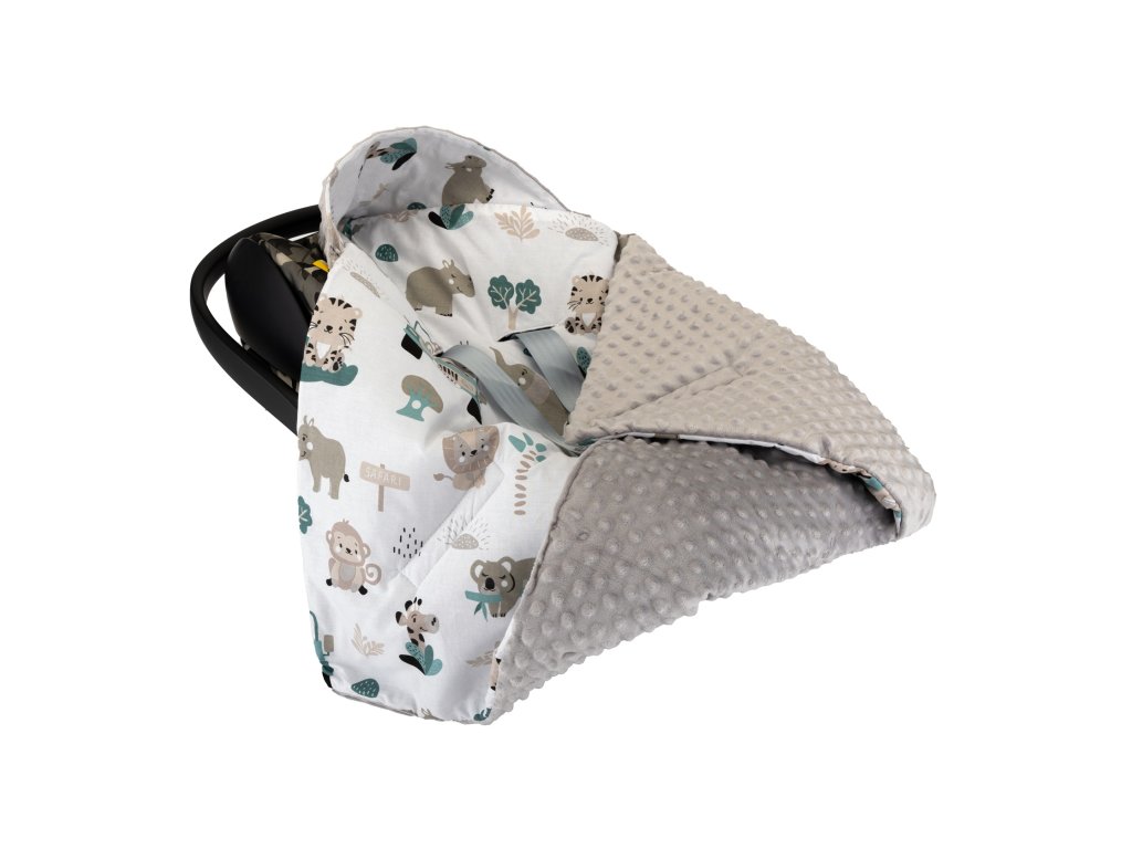 Bomimi Zavinovací deka do autosedačky minky pojízdná zoo, šedá xy