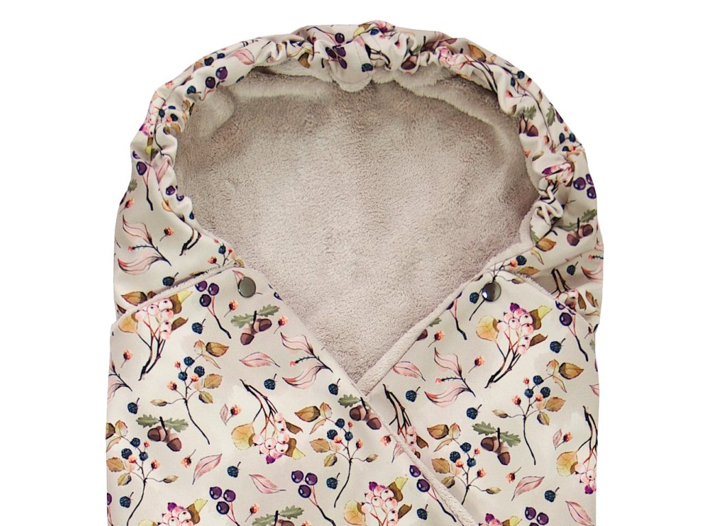 Zavinovačka je velmi praktický výrobek, který si našel mnoho spokojených zákazníků. Z vnější strany je vyrobena ze softshell materiálu a z vnitřní strany z plyše. Výhodou funkčního materiálu softshell je odolnost proti vodě a větru, odvádí pot a dokonale zahřeje. Díky rozepínání zadní části zavinovačky na druky, lze zavinovačku použít u všech typů 5ti bodového upínání bezpečnostních pásů. Je vhodná pro děti 0-12 měsíců, délka 90 cm ale umožňuje i delší užívání v závislosti na výšce dítěte.