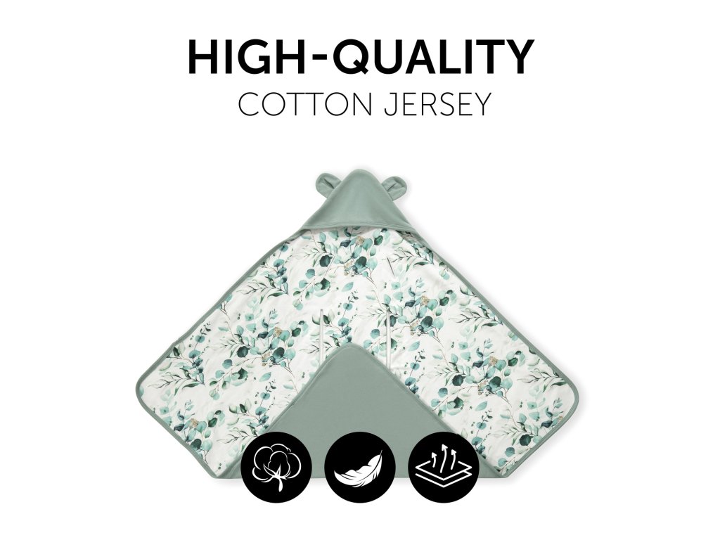 VYSOCE KVALITNÍ BAVLNĚNÝ JERSEY PRO SLADKÉ SNY // Deka Snuggle N Dream je vyrobena z měkkého, vysoce kvalitního, bavlněného Jersey, který dýchá a reguluje teplotu, zabraňuje přehřátí. Kapucka chrání hlavičku miminka před nepříjemným průvanem, ideální pro chladnější letní dny.