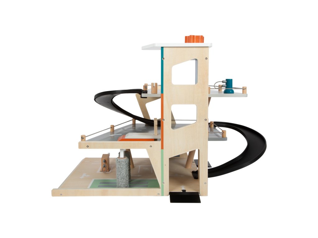 Video je pouze ilustrační, zobrazuje příbuzný produkt. Parkujte, tankujte, myjte nebo opravujte, a to vše s jednou garáží! Nabízí tři bohatě vybavená podlaží propojená atraktivním funkčním výtahem a zábavnými, na sebe plynule navazujícími rampami. Její součástí je dvojice autíček, která mohou při fantastických hrách využít pumpy, nabíjecí stanice, zvedací rampy, nebo myčky s realistickými kartáči. Každá z úrovní je navíc opatřena mechanickou závorou pro dokonale poutavé zážitky. Patra jsou opatřena gumovým hrazením, které dodávají jízdě autíček na dynamice a brání jejich vypadnutí. Garáž je podrobně zdobena mnoha barevnými ikonami a značením, které do her vnese i poučení. Je vyrobena ze silné, pevné a odolné dřevěné překližky s doplňky z masivního dřeva a nezávadného plastu. Výrobek vyžaduje montáž, dodáváno s obrázkovým návodem k sestavení. Hlavní vlastnosti:garáž a 2 autíčka3 podlaží propojená funkčním výtahem a 2 rampamipumpa, nabíjecí stanice, zvedací rampa, myčka a 3 závorykompatibilní s vláčkodráhami a souvisejícím příslušenstvím jiných výrobcůbohatě zdobeno jednoduchými ikonami a značenímpevné a odolné dřevěné provedeníSizing info