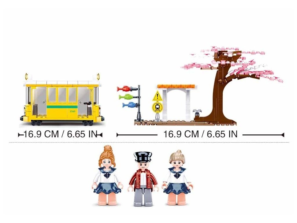 Nastupte do žluté tramvaje, vydejte se na projížďku městem a kochejte se pohledem na růžově kvetoucí sakury. Připojte k Městské tramvaji i Malebné bistro (M38-B1019) a vytvořte celou ulici se sakurami. Inovativní stavebnice Sluban je možno kombinovat s podobnými stavebnicemi mnoha dalších významných výrobců. Jsou vyráběny z kvalitního, nezávadného a odolného ABS plastu. Každá stavebnice je opatřena návodem k sestavení a balena v pestře potištěné papírové krabičce. Hlavní vlastnosti: 347 dílků, 3 figurkystřední obtížnosthezky vypadá se stavebnicí Malebné bistro (M38-B1019)inovativní figurky s otáčivými i výkyvnými částmi tělkompatibilní se stavebnicemi dalších výrobcůSizing info