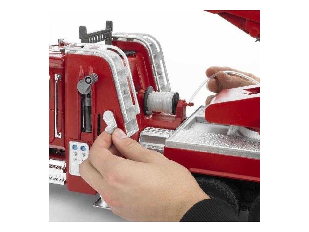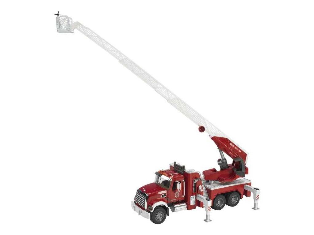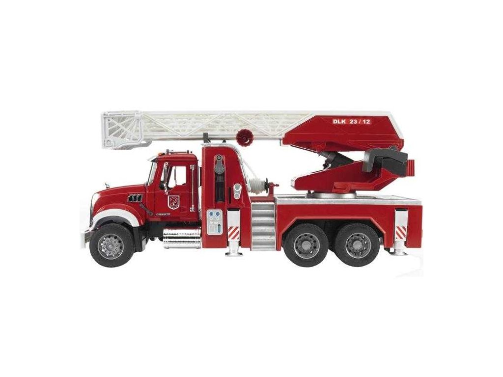 Třínápravový hasičský vůz MACK Granit s funkční stříkačkou a otočným výsuvným žebříkem, který lze vysunout až do délky 120 cm! Výsuvné rameno je otočné o 360°. Nechybí samozřejmě stabilizační podpěry a součástí je také maják se sirénou (BR2801). Hasičský vůz má otevíratelné dveře kabiny, sklopná vnější zrcátka a čelní okno vyrobené z kvalitního průhledného palykarbonátu. Je osazen měkkými profilovanými pneumatikami a je možné nahlédnout pod kapotu na blok motoru. Na košíku žebříku je držák na hadici, kterou lze navíjet pomocí boční kličky. Kompatibilní s postavami Bworld. Vyrobeno v Německu, z kvalitních materiálů. Hlavní vlastnosti: funkční stříkačkaotočný výsuvný žebřík od délky až 120 cmrameno otočné o 360°otevíratelné dveřesklopná zrcátkaměkké profilované pneumatikyotevíratelné kapotakompatibilní s figurkami Bworldvyrobeno v NěmeckuSizing info