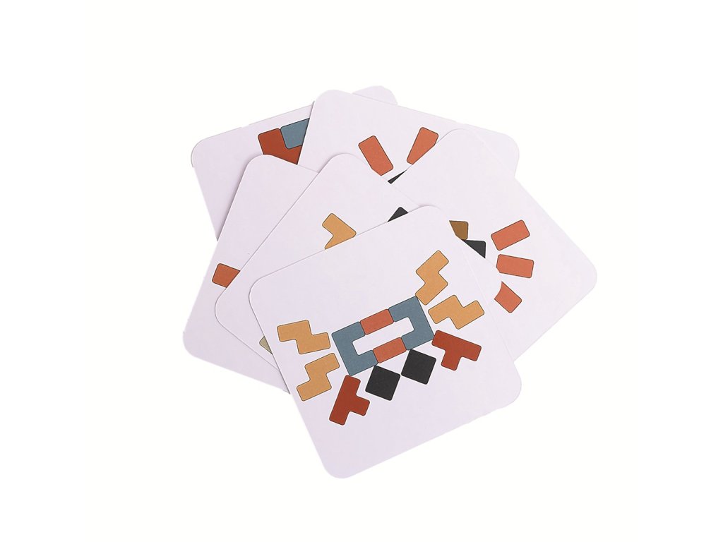 Chytrá a zábavná hra z přírodního dřeva, která rozvíjí logické myšlení, trpělivost i prostorovou představivost! Barevná skládačka nabízí více herních možností. Děti si mohou hrát samostatně nebo ve dvou. Při hře jednoho hráče je úkolem zaplnit celou hrací plochu pomocí různě tvarovaných dílků. Pokud si chcete užít hru ve dvou, rozdělte dílky do postranních zásobníků a pusťte se do souboje. Kdo z Vás lépe využije přidělené tvary? Součástí balení jsou také předlohové karty, podle kterých děti vybírají správné dílky a skládají je do určeného tvaru. Dřevěný stojánek zajišťuje stabilitu, aby bylo skládání přehledné a pohodlné. Hra podporuje zábavnou formou rozpoznávání tvarů, rozvíjí koncentraci, strategické a logické myšlení a rozvíjí schopnost řešit problémy. Hlavní vlastnosti: 47 dílůrozvíjí logické a prostorové myšleníprocvičuje koordinaci ruka-okoposiluje trpělivost a schopnost řešit problémys praktickým stojánkemvhodné pro děti od 3 letSizing info