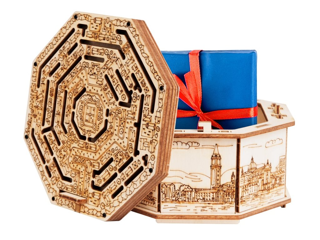 Darování poukázky, hotovosti v obálce, nebo jiného dárku pro Vás není dost osobní? Chcete předat dárek skutečně kreativním způsobem? Spojte překvapení se zkouškou důmyslu a trpělivosti. S tímto boxem v exkluzivním designu neuděláte chybu. Ať už jde o narozeniny, svatbu, oslavu plnoletosti, přijímání, biřmování, nebo jakýkoliv jiný dárek. Tento jedinečný box je ideální pro každou příležitost. Rozměry vnitřního prostoru jsou 10×10×4,5 cm. Běžný dárkový balicí papír se používá pouze jednou, tento box můžete používat opakovaně. Hlavní vlastnosti: kreativně zabalený dárekopakovaně použitlnévhodný pro každou příležitoststřední obtížnostvyrobeno v EU Dokumentace: návod k sestavení:Sizing info