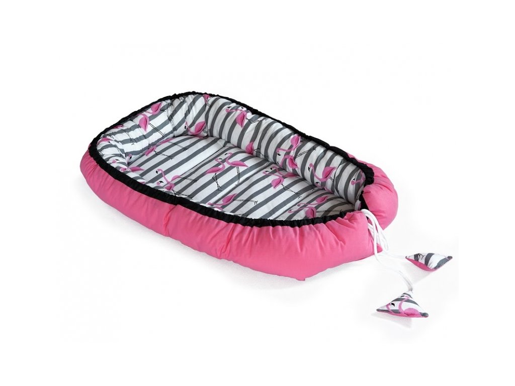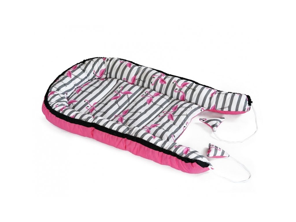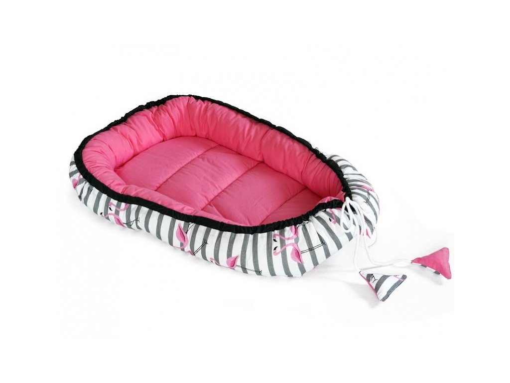 Baby Nellys Oboustranné hnízdečko, kokon 60x90cm - Plameňák/Proužky, růžová/černá