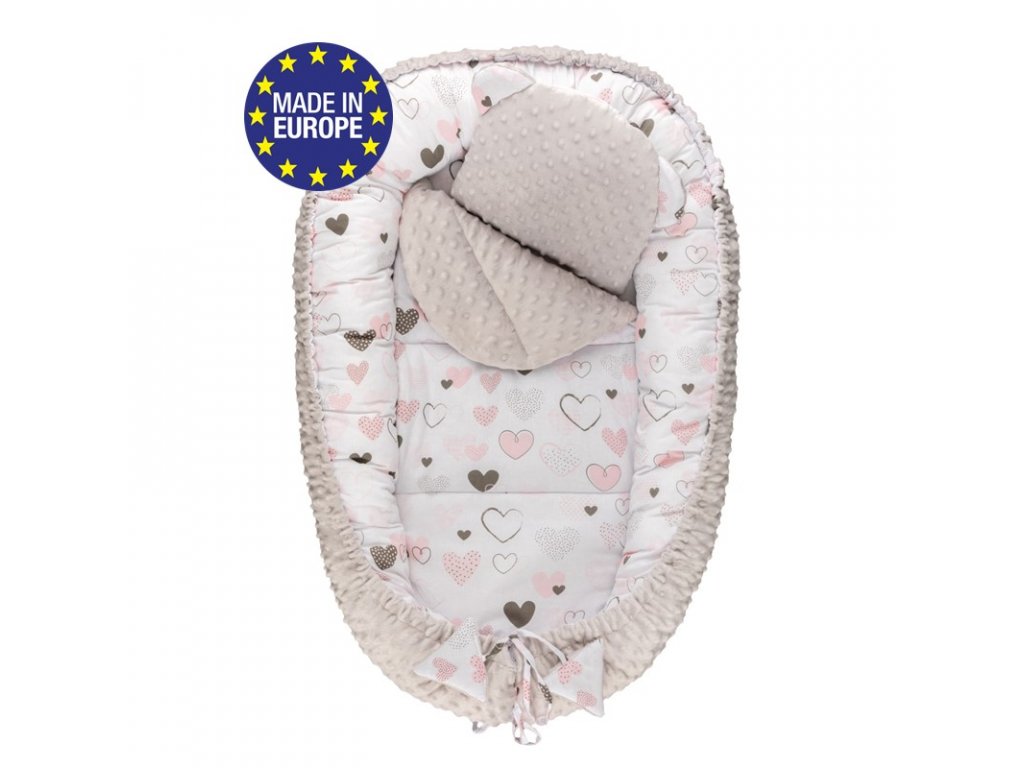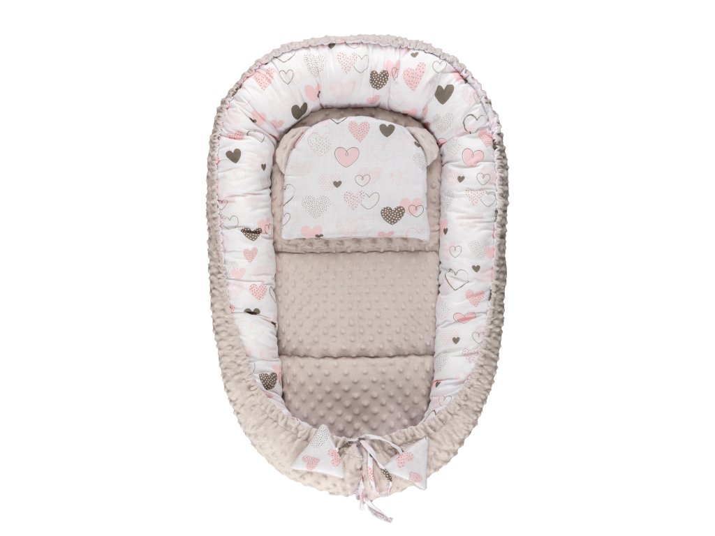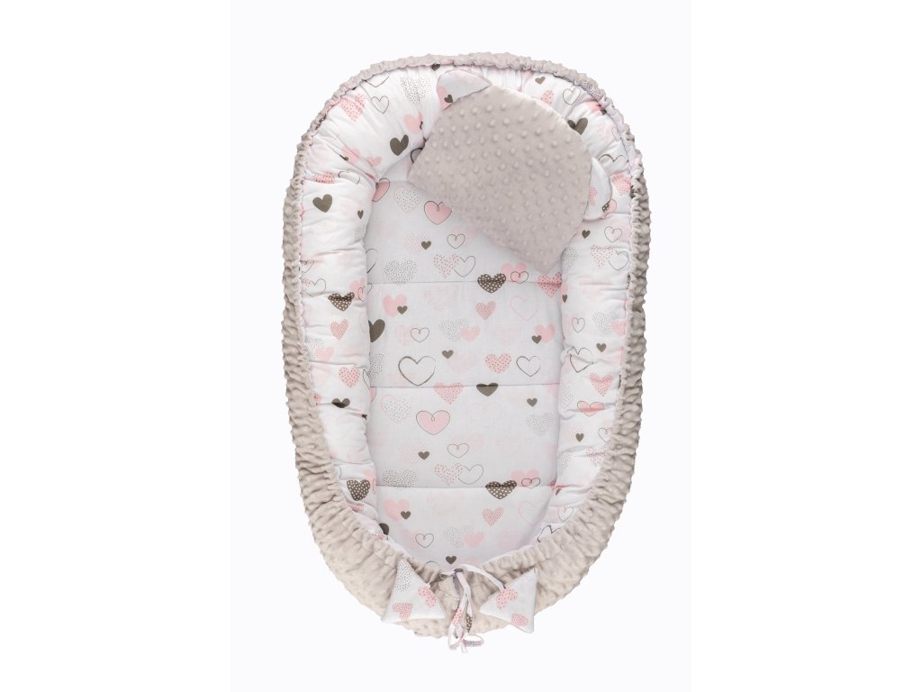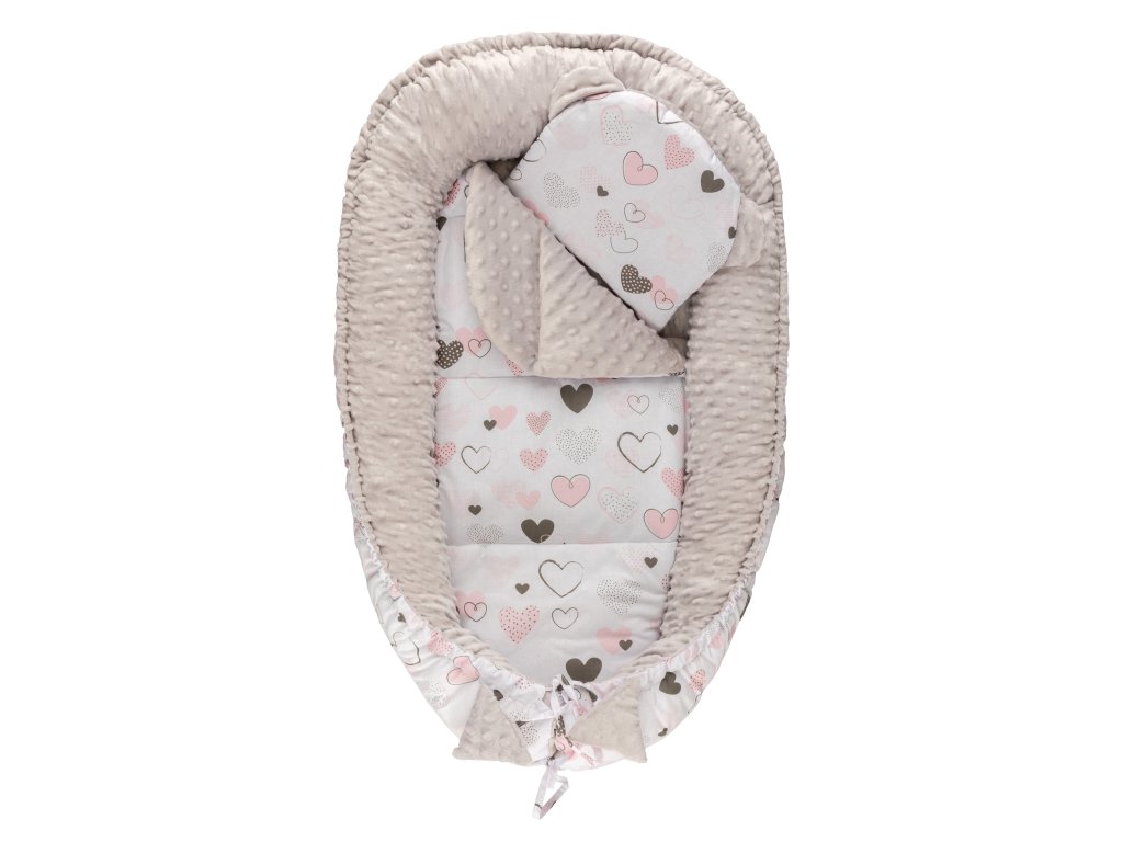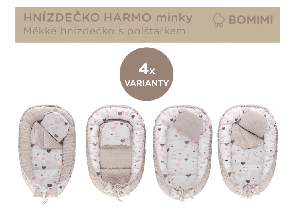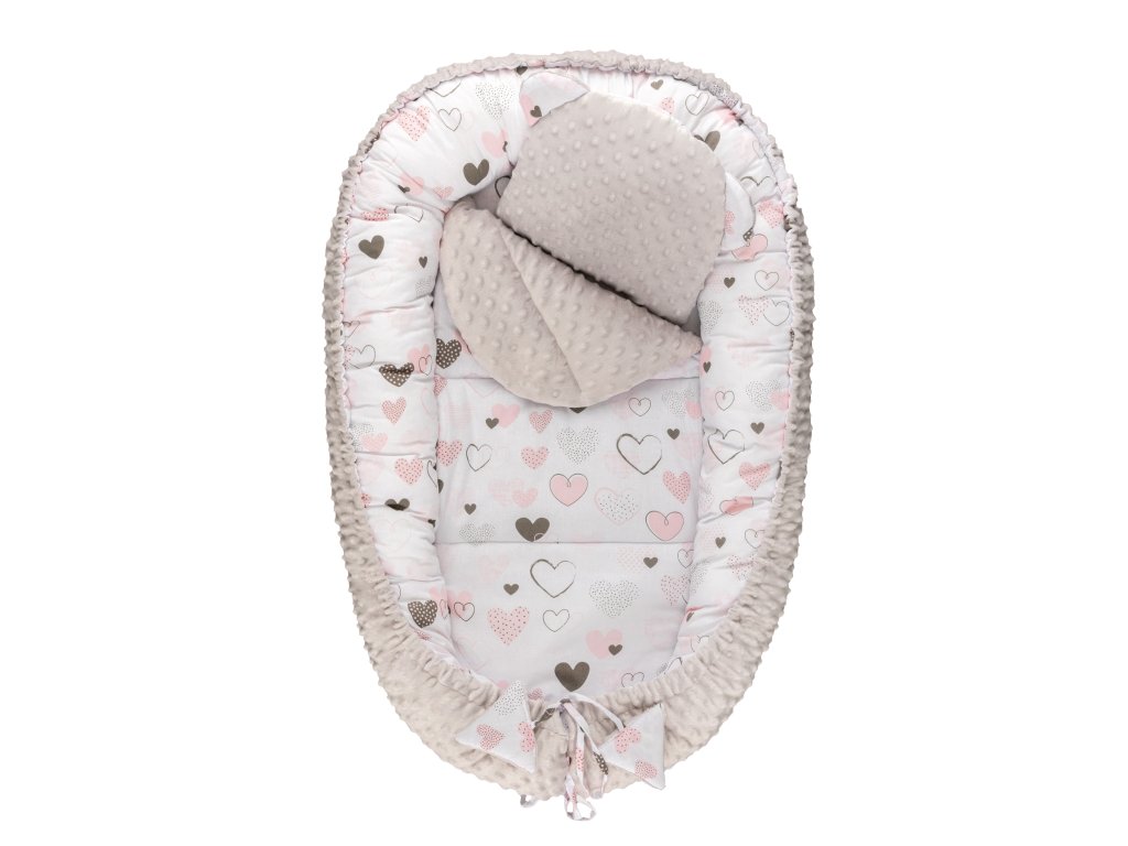 Bomimi HARMO Hnízdečko s polštářkem minky, SRDÍČKA šedá