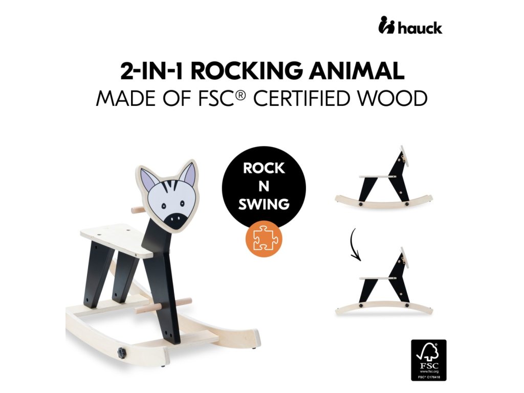 K DISPOZICI V RŮZNÝCH MOTIVECH // Houpací zvířátko Rock N Swing je k dispozici v různých motivech, takže si můžete vybrat oblíbené zvířátko svého dítěte, např. zebru nebo lišku.