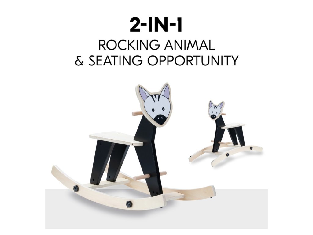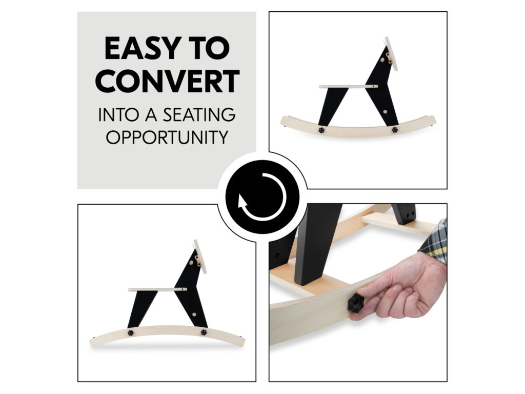 SNADNÁ PŘEMĚNA NA SEDÁTKO // Houpadlo lze snadno a rychle odejmout, otočit a bezpečně přišroubovat zpět na místo, čímž se houpací zvířátko promění ve skvělé místečko k sezení pro vaše dítě.