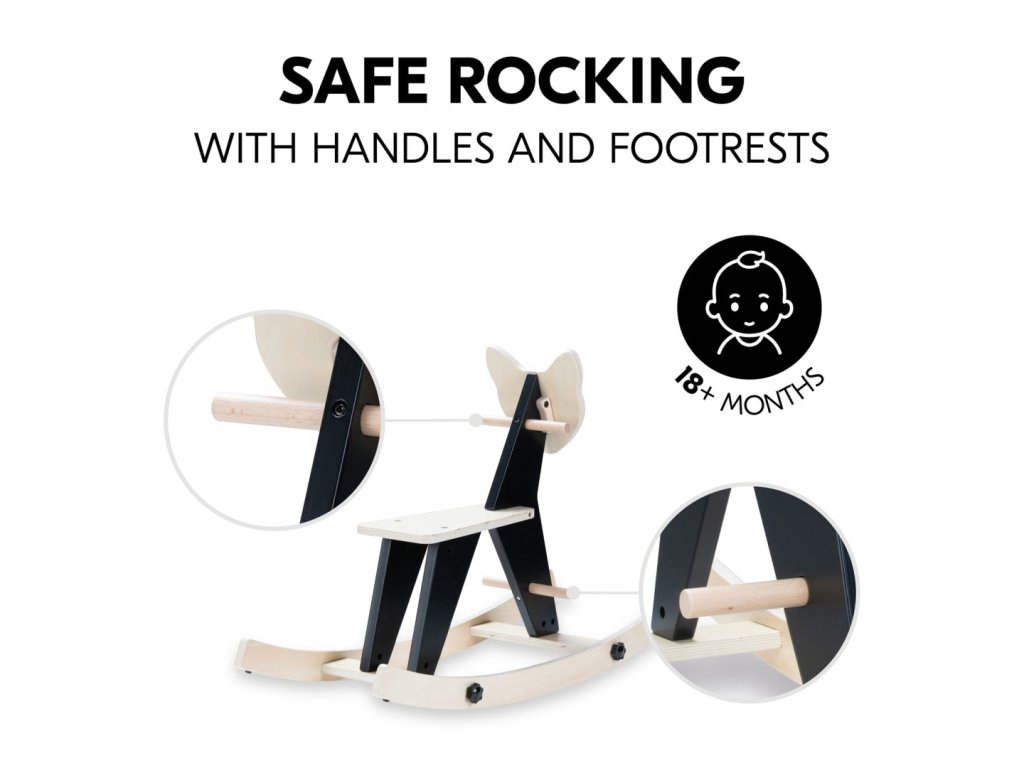 BEZPEČNÉ HOUPÁNÍ S DRŽÁTKY A OPĚRKAMI PRO NOŽIČKY // Díky držadlům a opěrkám na nožičky se vaše dítě může houpacího zvířátka vždy bezpečně přidržovat a houpat se dopředu a dozadu. Vhodné od 18 měsíců.