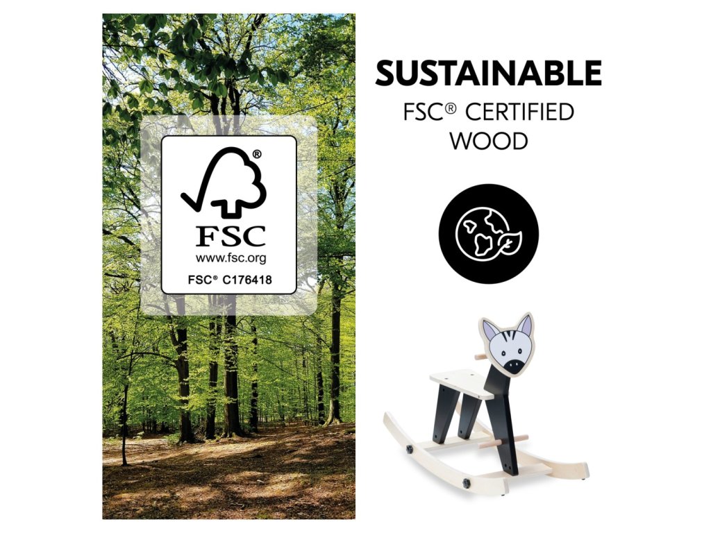 DŘEVO S CERTIFIKACÍ FSC® PRO ZDRAVĚJŠÍ ŽIVOTNÍ PROSTŘEDÍ // Houpací zvířátko je vyrobeno z odolného dřeva, které pochází z lesů s certifikátem FSC®, který zaručuje udržitelné a ekologické využívání lesů chránící rostliny a zvířata.