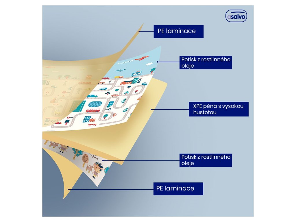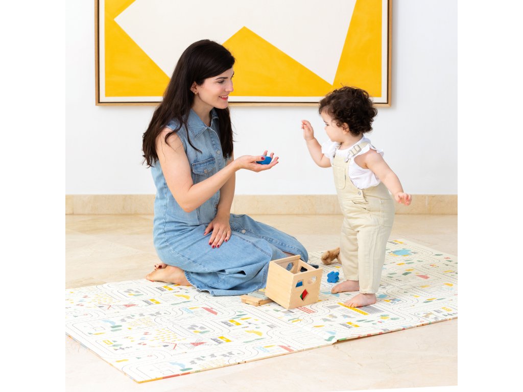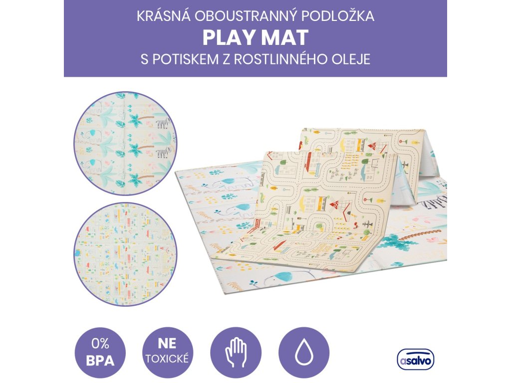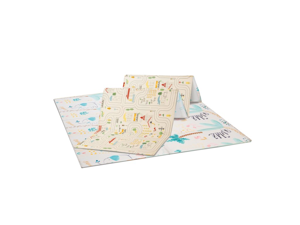 Veselá skládací podložka nabízí mnoho využití. Podložku je možné využít na hraní, cvičení, odpočinek ať už doma nebo na cestách. Veselá podložka má oboustranný potisk, se kterým si děťátko užije spousty zábavy. Na jedné straně je městečko plné uliček, ideální pro malé motoristy, na druhé straně veselý potisk se zvířátky. Potisk v něžných barvách rozvíjí dětskou fantazii a podporuje rozvoj zrakového smyslu a koordinace. Podložka je vyrobena z XPE pěny, což je velmi lehký a zároveň velmi pružný a pevný materiál. Na potisk byl použit inkoust z rostlinného oleje, aby v každém ohledu výrobek odpovídal vysokým bezpečnostním potřebám děťátka. Podložka je dodávána v praktické cestovní tašce, do které si svou oblíbenou podložku můžete jednoduše složit a vzít s sebou ať už na dovolenou nebo k babičce.