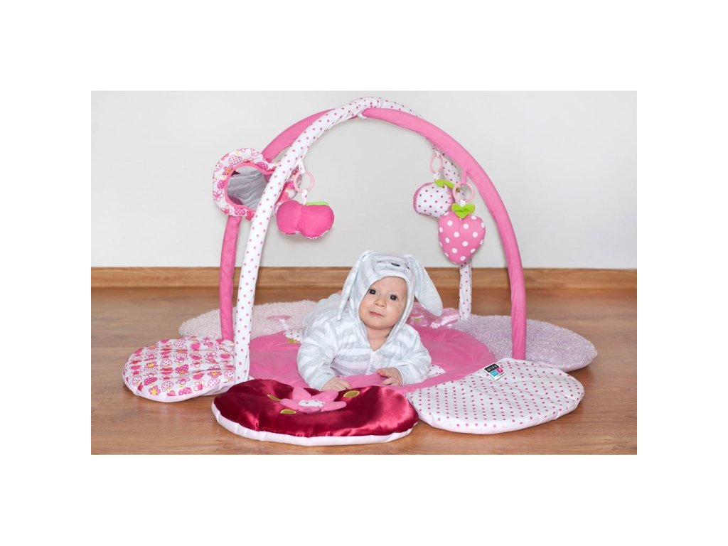 Krásná originální vzdělávací hrací deka PlayTo s hrazdou rozvíjí dětskou představivost díky poznávání barev a tvarů. Hrací deka ve tvaru kytičky je v krásné zářivé barvě. Rozvíjí smysly hmatu, zraku i sluchu díky šustícím a pohyblivým částem. Příjemný a měkký materiál umožňuje pohodlné ležení na bříšku nebo zádech a umožňuje svobodu pohybu Vašeho dítěte. Miminko tak může získat bezpečný útulnější prostor a motivuje ke zvedání děťátka. Hračky lze z hrazdičky snadno sundat. Hračky lze odepnout a používat samostatně. Pořiďte Vašemu miminku pohádkové místo pro hraní i odpočinek. Rozměry: průměr: cca 100 cm, výška cca 54 cm. Vhodné pro děti od 3 měsíců.Doplňkové parametry