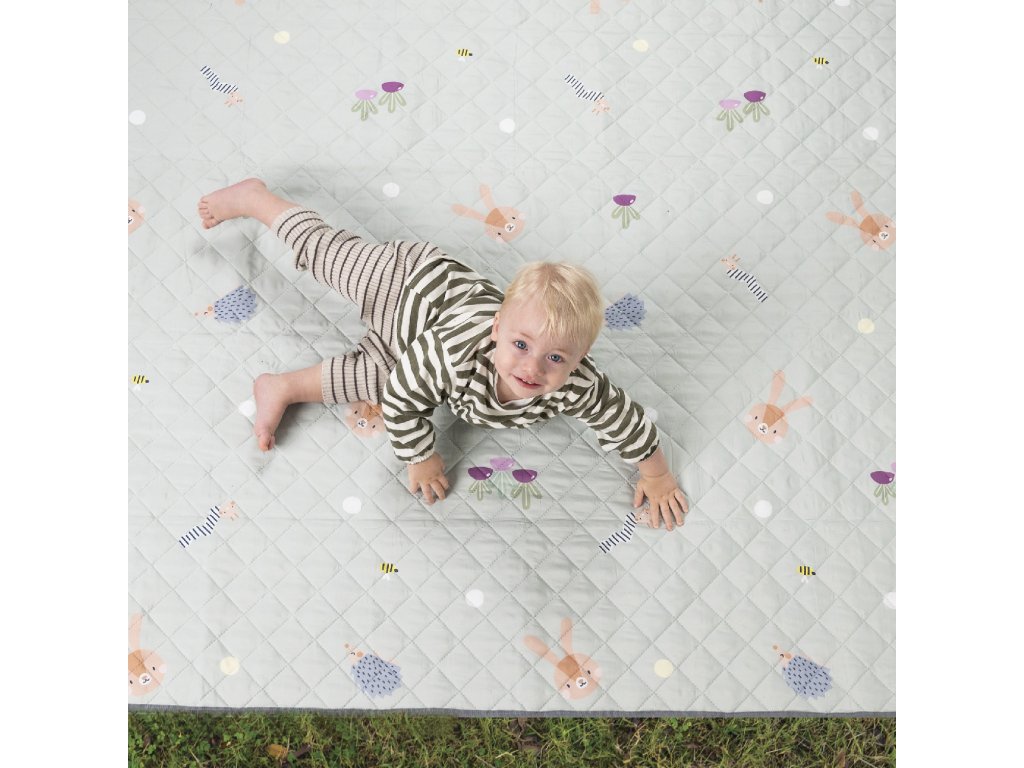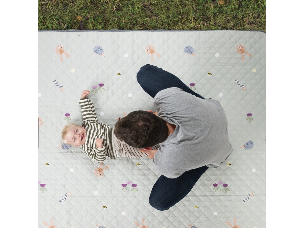 Měkká, extra velká hrací deka s voděodolnou spodní stranou je ideální pro použití venku. Deka nabízí dostatek prostoru pro rodinný piknik i pro hraní rodičů s dítětem. Pro přenášení se deka snadno složí do tvaru tašky s držadlem. Barevné ilustrace na dece podněcují ke hraní rodiče s dítětem a pomáhají rozvíjet emoční inteligenci dítěte. Deka se snadno čistí otřením a je možné ji prát v pračce. Rozměry: 200 x 150 cm Vhodné pro děti od narození.Doplňkové parametry