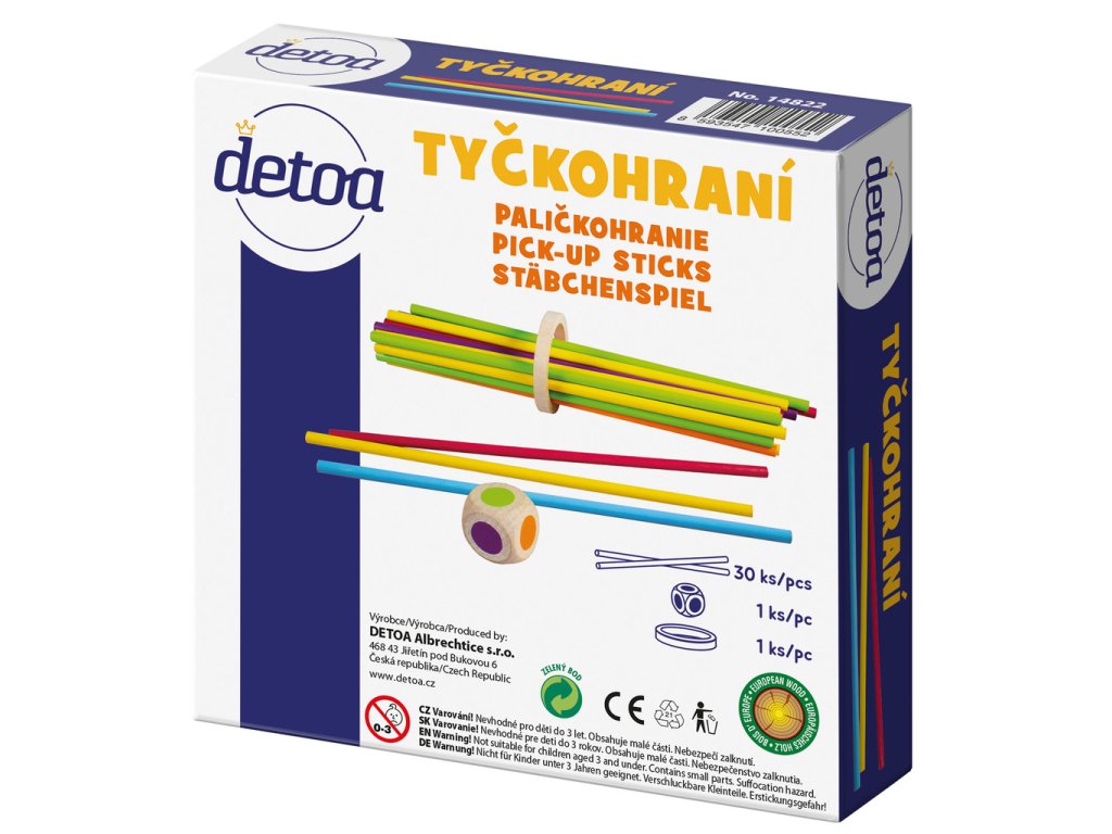 Máte rádi hru mikádo, ale už byste si jí chtěli zahrát trochu jinak? Pak je Tyčkohraní určeno přesně pro Vás! Hra pro dva a více hráčů podporuje jemnou motoriku, logiku a trpělivost. Je vhodná také k procvičení barev. A jaký že je princip této hry? Hoďte kostkou a vytáhněte tyčku stejné barvy tak, aby se dřevěné kolečko nedotklo stolu. Pokud se tak stane, hráč prohrává. Tyčkohraní obsahuje 30 ks barevných tyčinek, 1 hrací kostku a 1 dřevěný kroužek. Hlavní vlastnosti: vyrobeno v ČRsplňuje všechny aktuální evropské bezpečnostní normyobsahuje 30 tyček, 1 kostku a 1 kroužekpro dva a více hráčůmikádo trošku jinakpodporuje jemnou motoriku, logické myšlení, trpělivost a procvičování barevSizing info