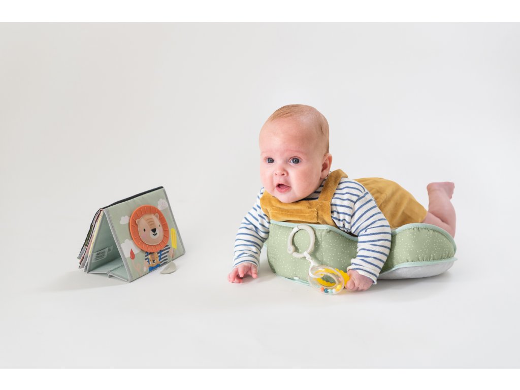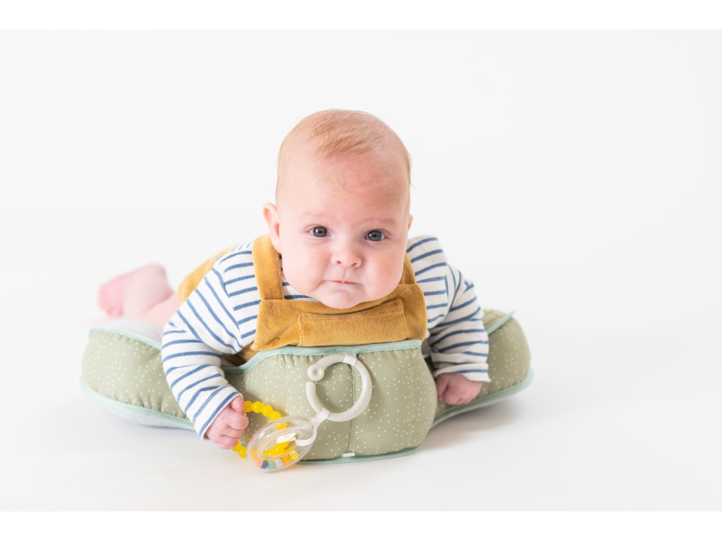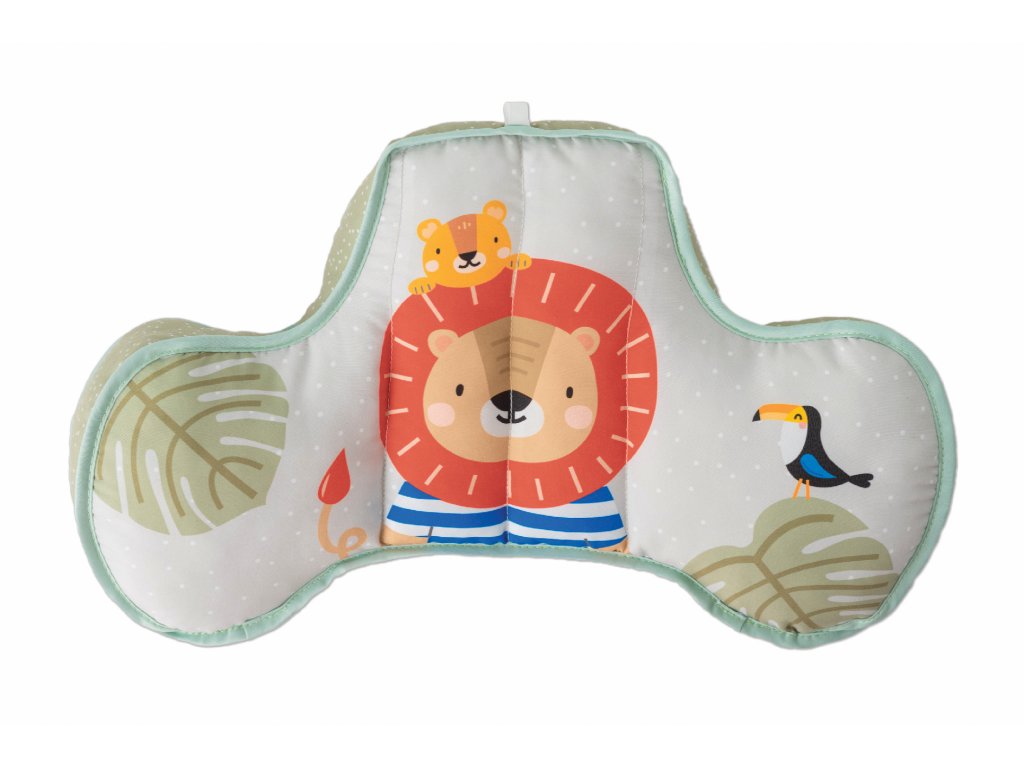 Polštářek z měkkého, příjemného materiálu je speciálně navržený, aby podporoval hraní dítěte na bříšku. Polštářek s kousátkem a chrastítkem podněcuje dítě ke zvedání hlavičky a krku. Pro malého kojence, který tráví většinu dne i noci ležením na zádech, je důležité, aby trávil několikrát denně čas ležením na bříšku a takzvaným “pasením koníčků”. Poloha na bříšku přináší děťátku jiný pohled na svět a posiluje krční a zádové svaly, které později umožňují dítěti začít se přetáčet, lézt a sedět bez opory. Vhodné pro děti od narození.Doplňkové parametry
