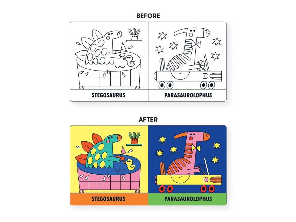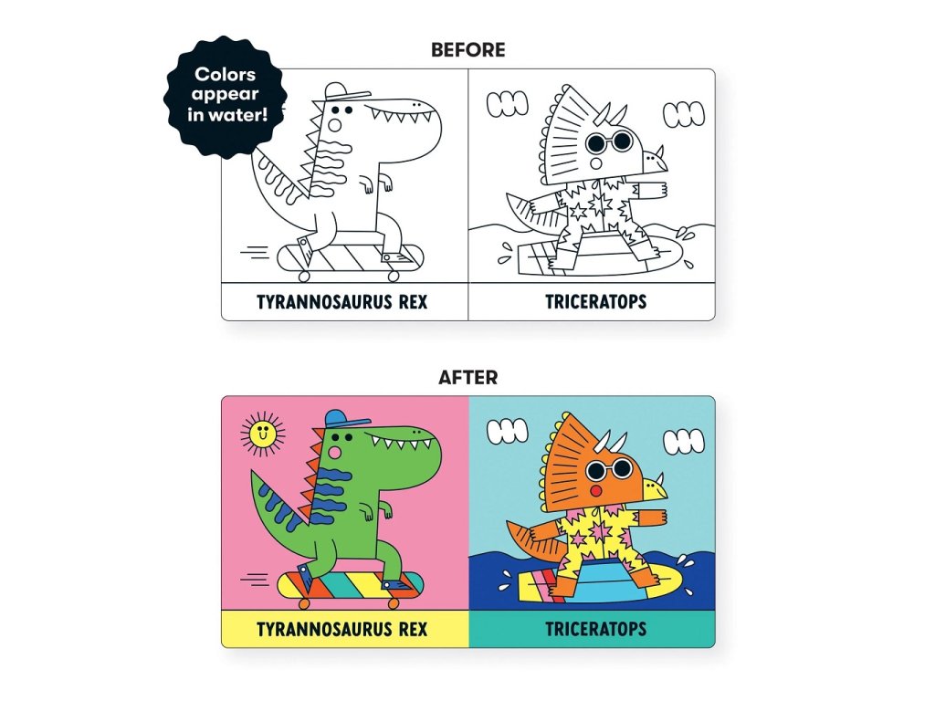 Objevte kouzlo jedinečných hraček ke koupání. Zdánlivě nenápadná obrázková knížka po namočení roztomile ožívá pestrými barvami. Roztomilí dinosauři snadno upoutají pozornost kojenců či batolat a zabaví je při koupání. Hlavní vlastnosti: 6 stran s obrázkyaktivace barev ponořením do vodypodporuje pozornostrozvíjí smysly a motoriku dětívhodné od narozenísplňuje bezpečnostní normy CPSIA, ASTM a CESizing info