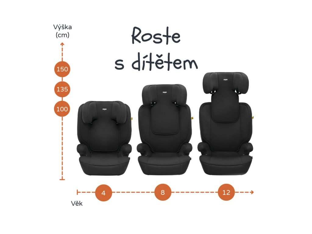 Zopa Beta i-Size Isofix je prémiová autosedačka, která spojuje bezpečnost s komfortem. Je navržena pro děti s výškou od 100 do 150 cm, což pokrývá široké věkové rozpětí přibližně od 3 do 12 let.