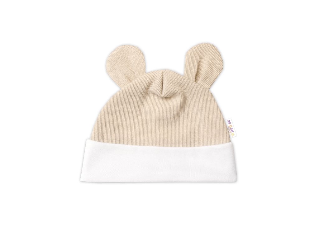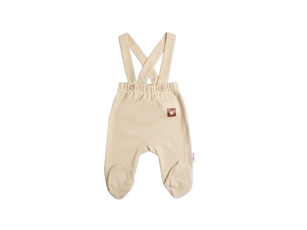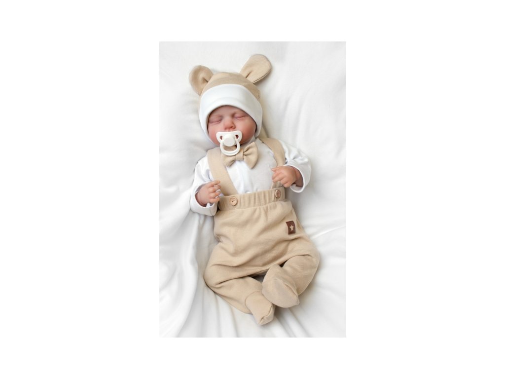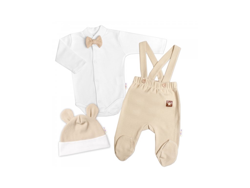 Bavlněná souprava Gentleman 3D, body, polodupačky s láclem + čepička, béžová/bílá