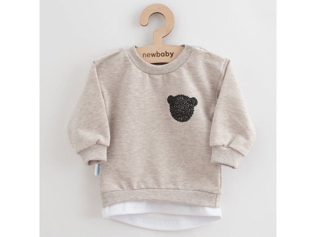 Stylová 2-dílná kojenecká soupravička New Baby Brave bear. Soupravička se skládá z trička a tepláčků. Tričko s dlouhým rukávem se zapínáním na cvočky na ramínku, je vyrobeno s příjemné teplákoviny. Je zdobeno zajímavým 3D obrázkem medvídka. Tričko má v spodní části bavlněnou vsadku, která dodává šmrncovní vzhled. Tepláčky s pružným lemem v pase a na nohavičkách jsou vyrobeny s pohodlné teplákoviny. Na kolínkách je ABS potisk ve tvaru medvídka. Ochrání tak kolínka dítěte při lezení. Složení: 96% bavlna, 4% elastan.Doplňkové parametry