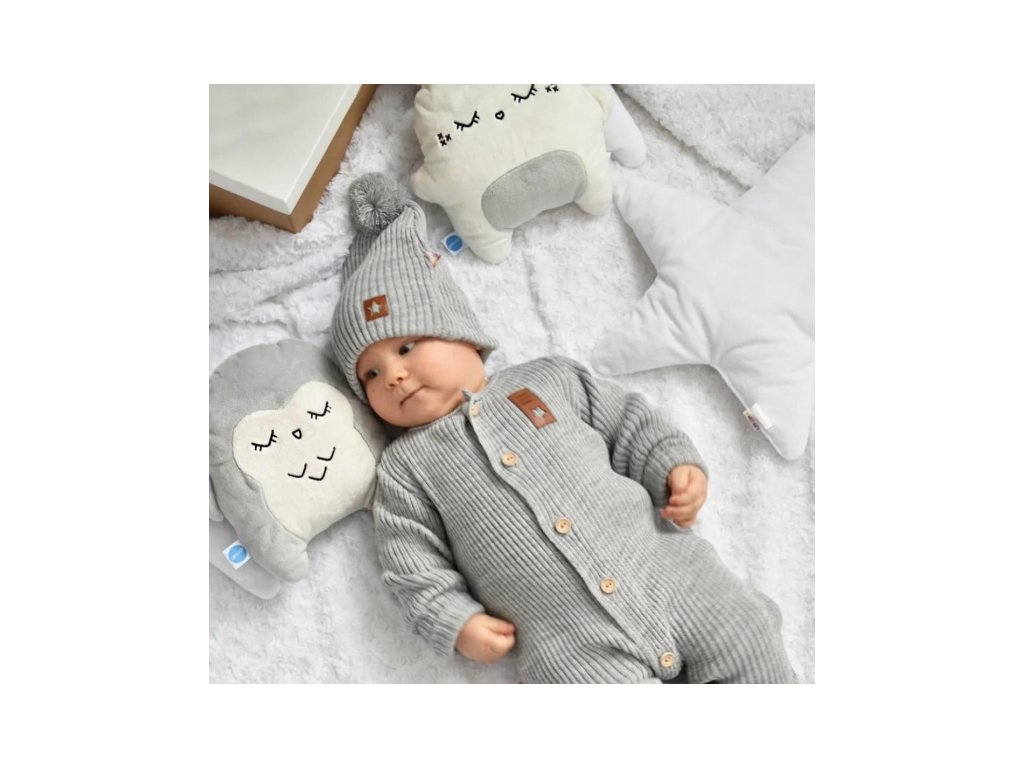 Baby Nellys 2-dílná sada Pletený overálek STAR + čepice Hand Made, šedý