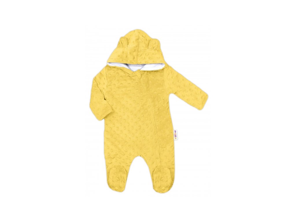 Baby Nellys Kombinézka/overálek MINKY s kapucí a oušky - žlutá