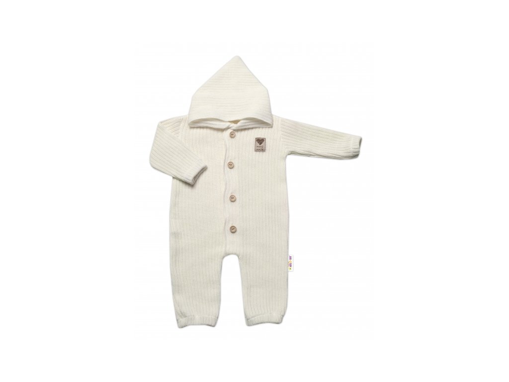 Baby Nellys Pletený overálek s kapucí a knoflíčky Hand Made, ecru