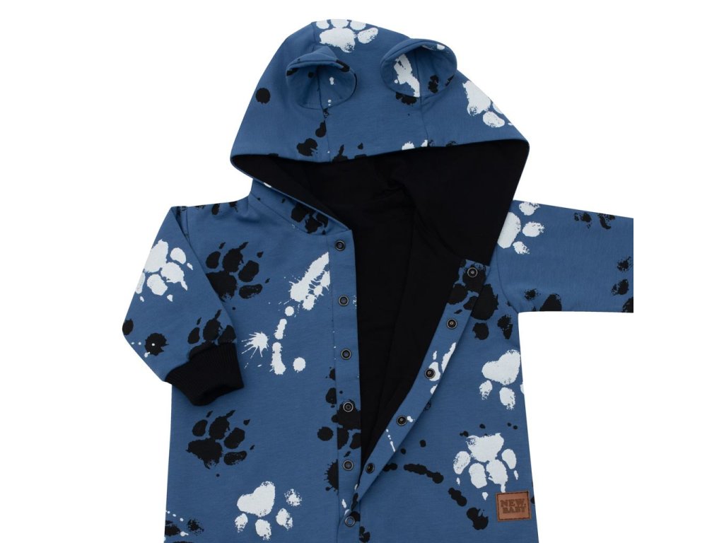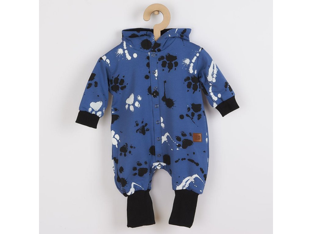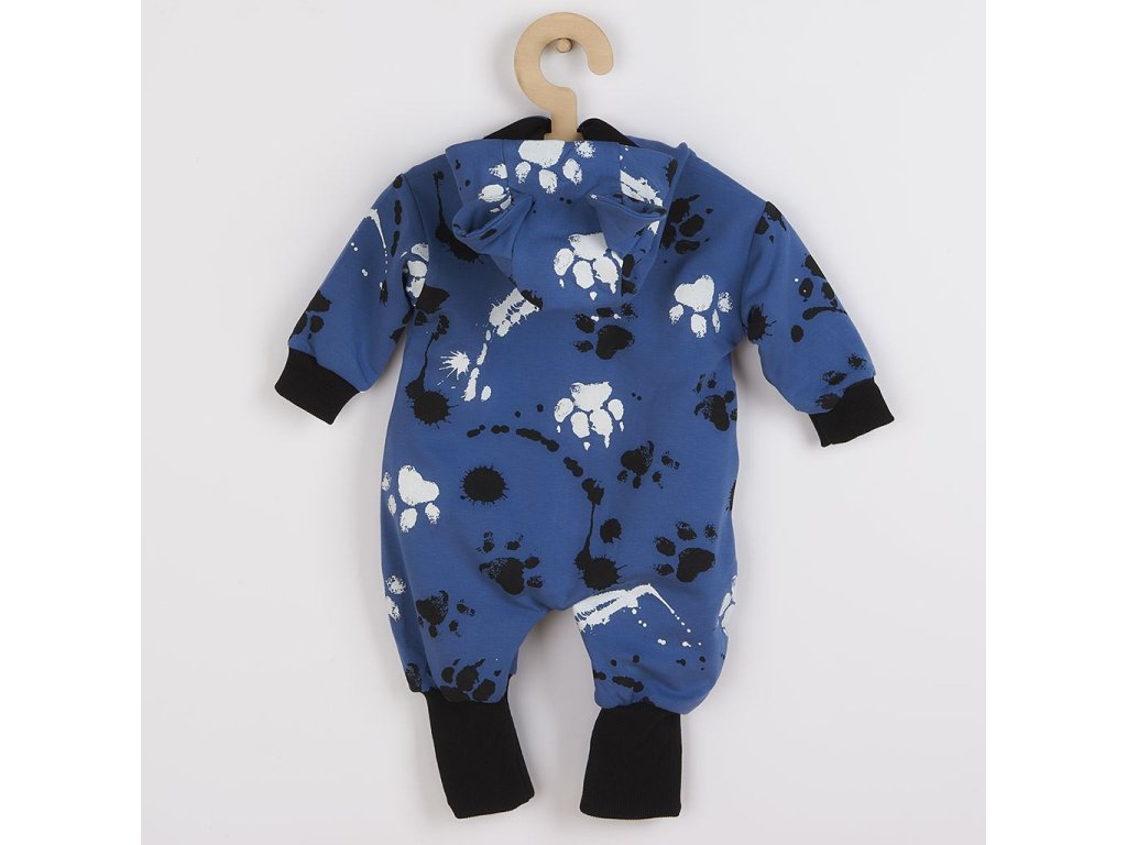 Kojenecký bavlněný overal s kapucí a oušky New Baby tlapka modrý