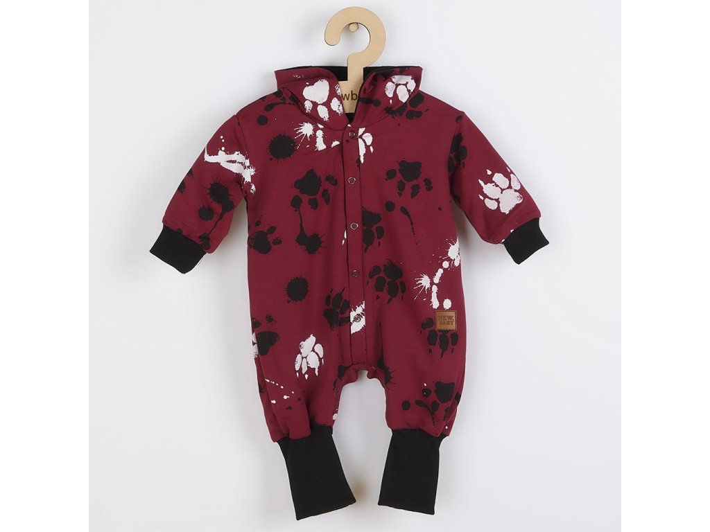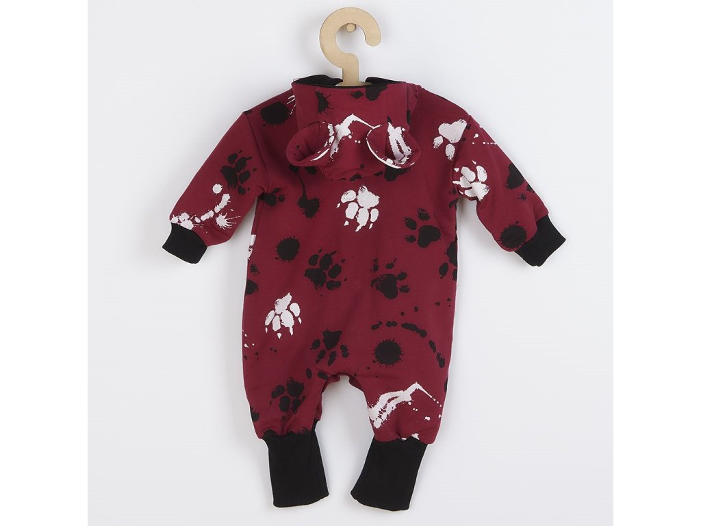 Kojenecký bavlněný overal s kapucí a oušky New Baby tlapka tmavě růžový