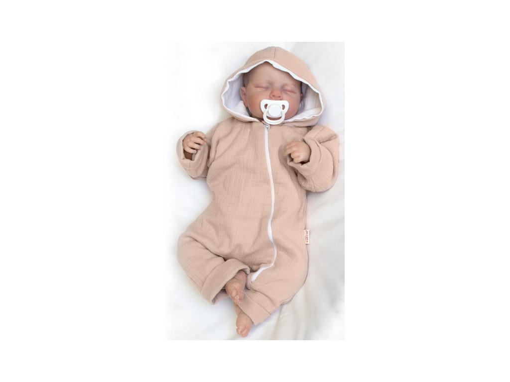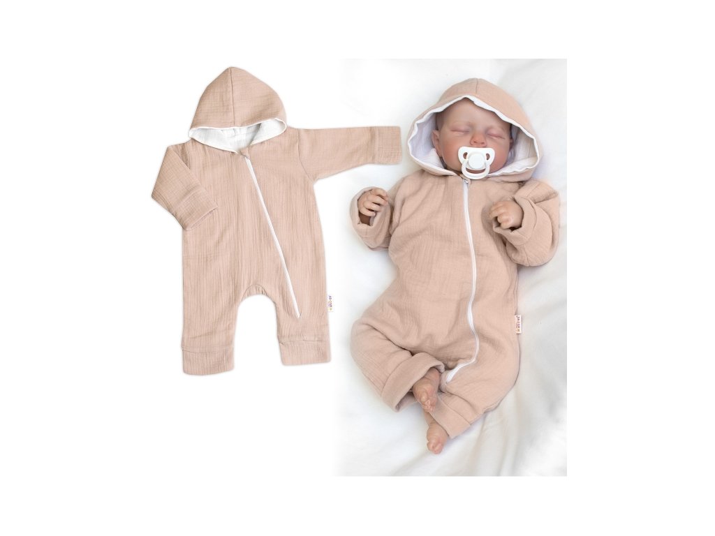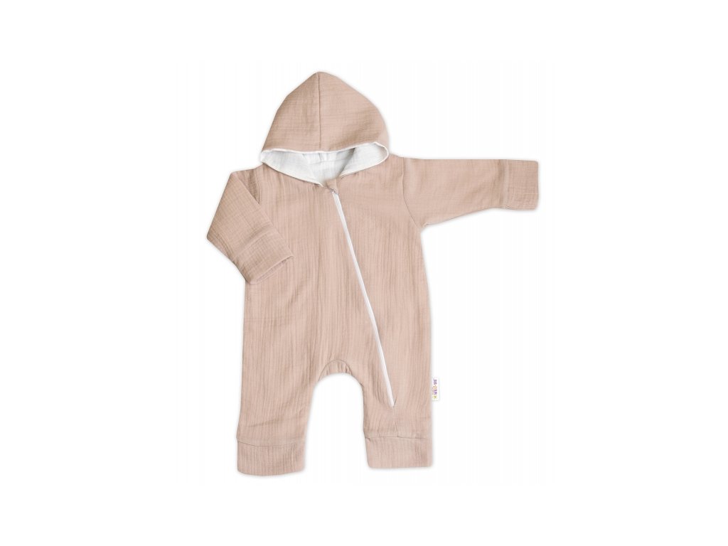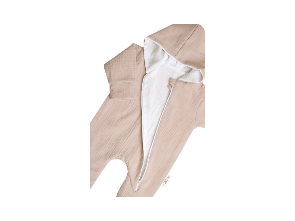 Mušelinový overálek s kapucí, dvouvrstvý, Hand Made, béžový