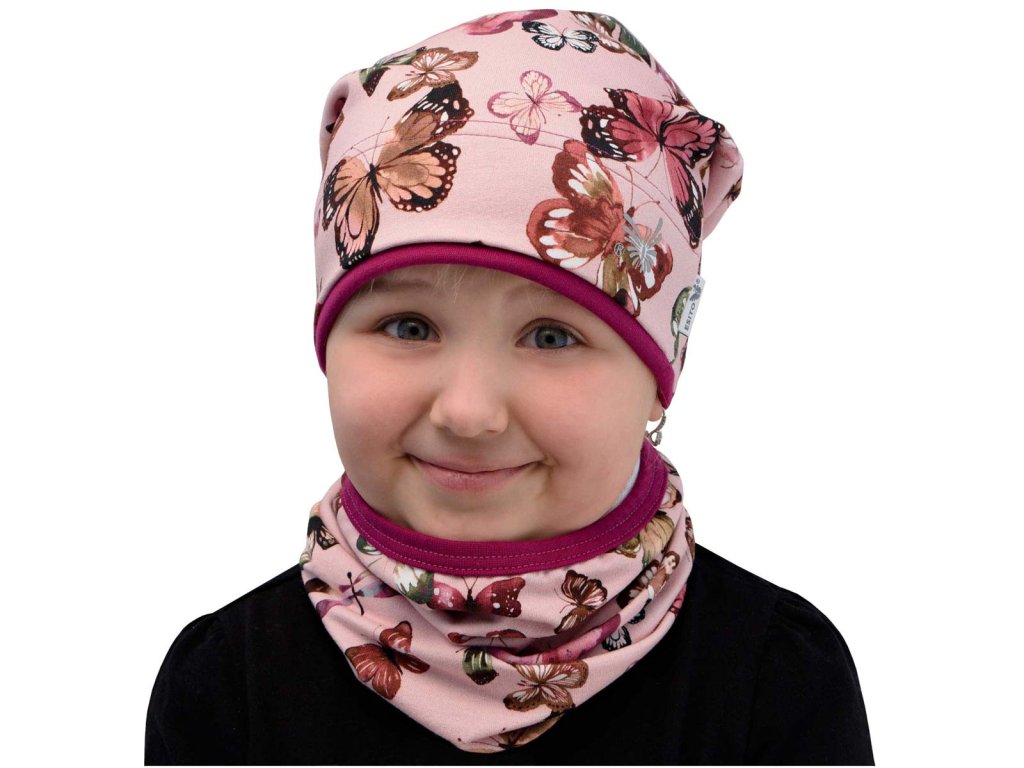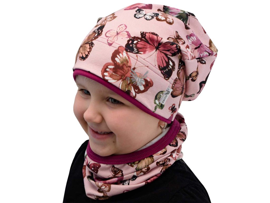 ESITO | Jarní čepice spadená BIO Motýl růžový - růžová / 42
