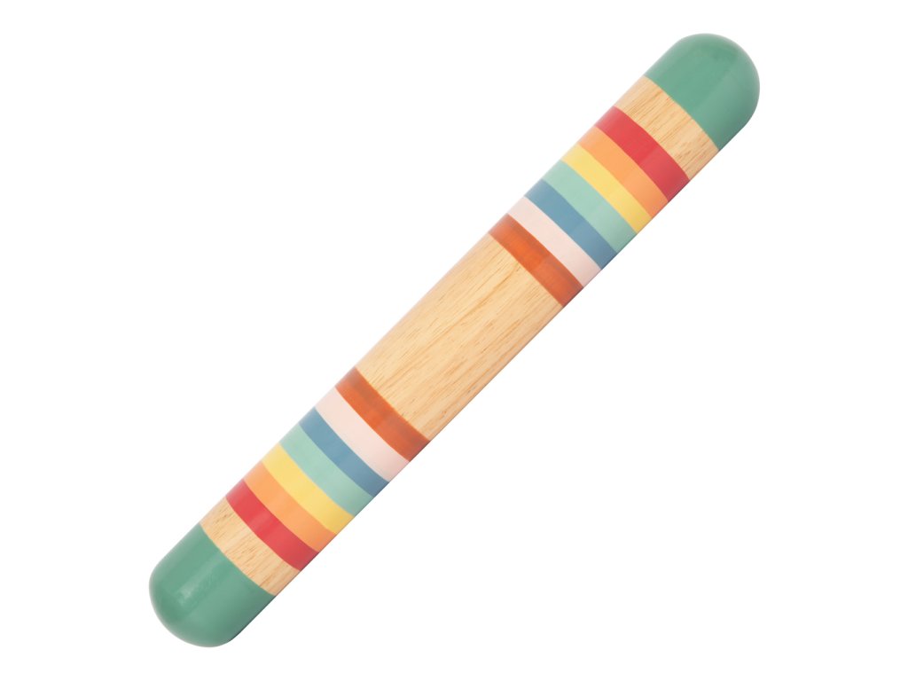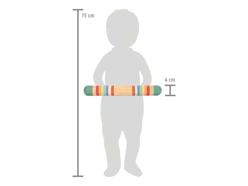 Kdo slyší déšť? S touto dešťovou hůlkou vyrobenou ze dřeva mohou děti kdykoli napodobit zvuk deště nebo poslouchat jemné šumění vody. Pohyb dešťové hůlky vytváří příjemný, rovnoměrný zvuk, který připomíná tekoucí vodu nebo šumění dešťových kapek. Zatímco v Jižní Americe chtěli medicinmani zvukem dešťové hůlky nalákat vytoužený déšť, tak u nás si fascinující, příjemný zvuk s uklidňujícím účinkem užívají především děti. Má ale i všestranné použití jako chrastítko, rytmický nástroj, zvuková hračka nebo uklidňující smyslová hra. Smyslová hračka trénuje nejen akustické vnímání, ale díky modernímu barevnému provedení je také opravdovým poutačem do dětského pokoje. Hlavní vlastnosti: dešťová hůl z robustního dřevalze použít jako chrastítko, rytmický nástroj, zvukovou hračku nebo uklidňující senzorickou hruvhodné i pro nejmenší dětipodporuje rozvoj akustického a zrakového vnímáníkvalitní potisk, moderní barevné schéma, mnoho přírodního dřevapříjemná haptikaSizing info