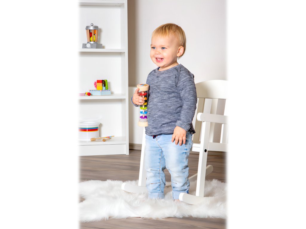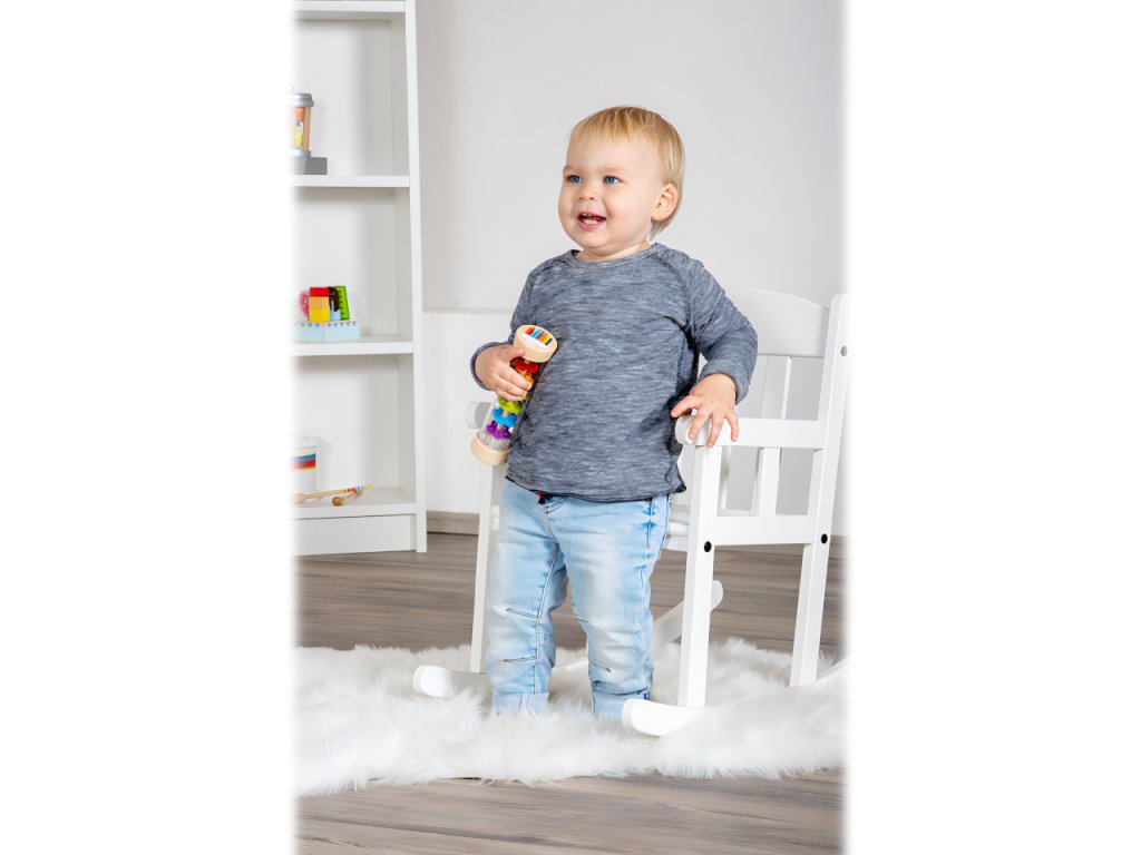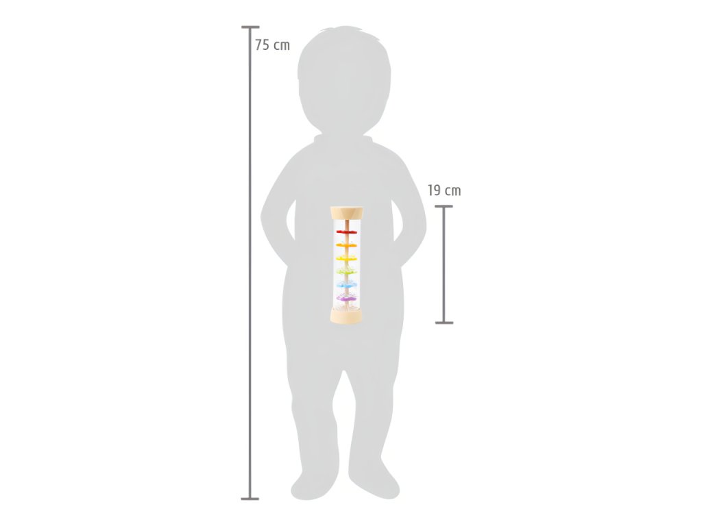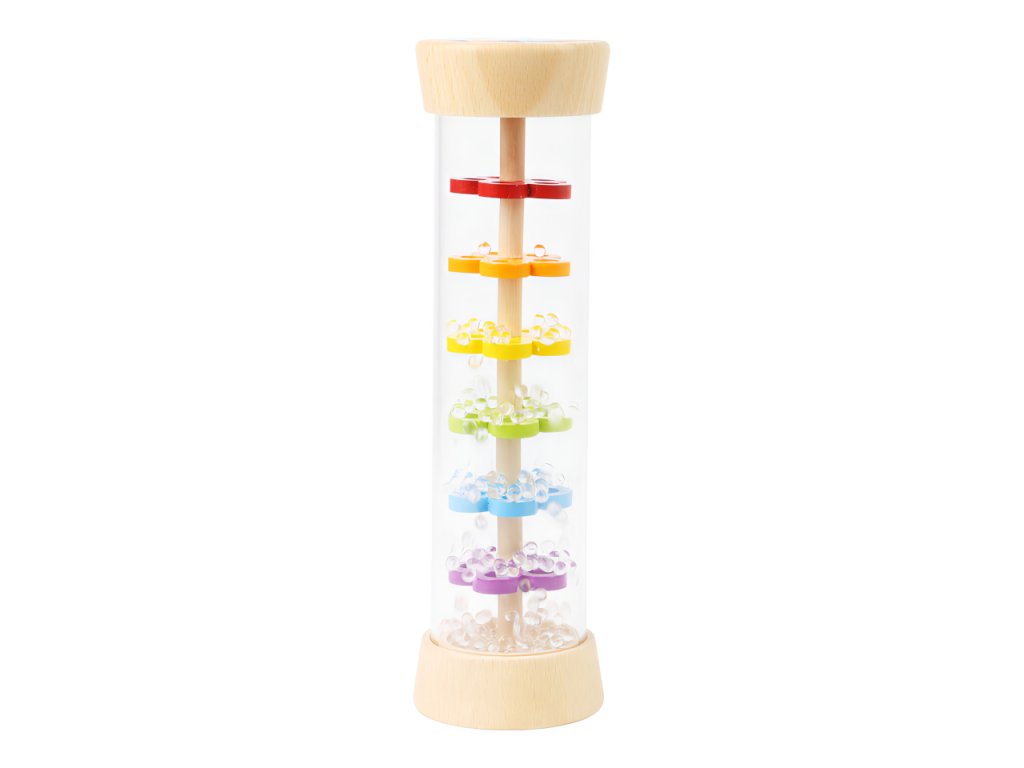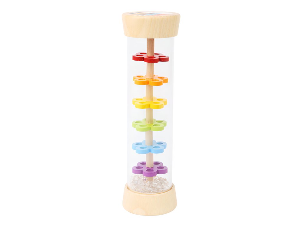 Tak přesně takhle zní déšť! S dešťovou holí můžete imitovat zvuky jemného deště. Můžete ji použít jako chrastítko, rytmickou hračku. Tělo hračky je průhledné, můžete tak pozorovat jak se kuličky pohybují přes zábrany ve tvaru květin. Hlavní vlastnosti: hračka trénuje akustické a vizuální vnímánívhodná také jako chastítko pro nemluvňatauklidňuje smysly dětí i dospělýchSizing info