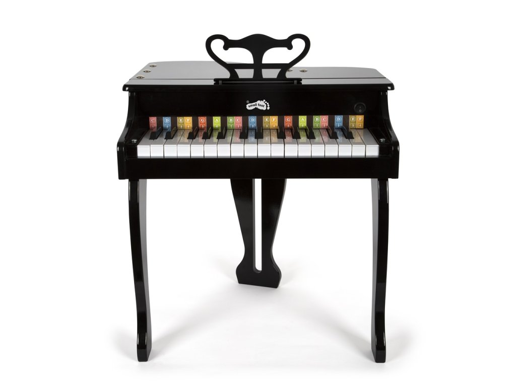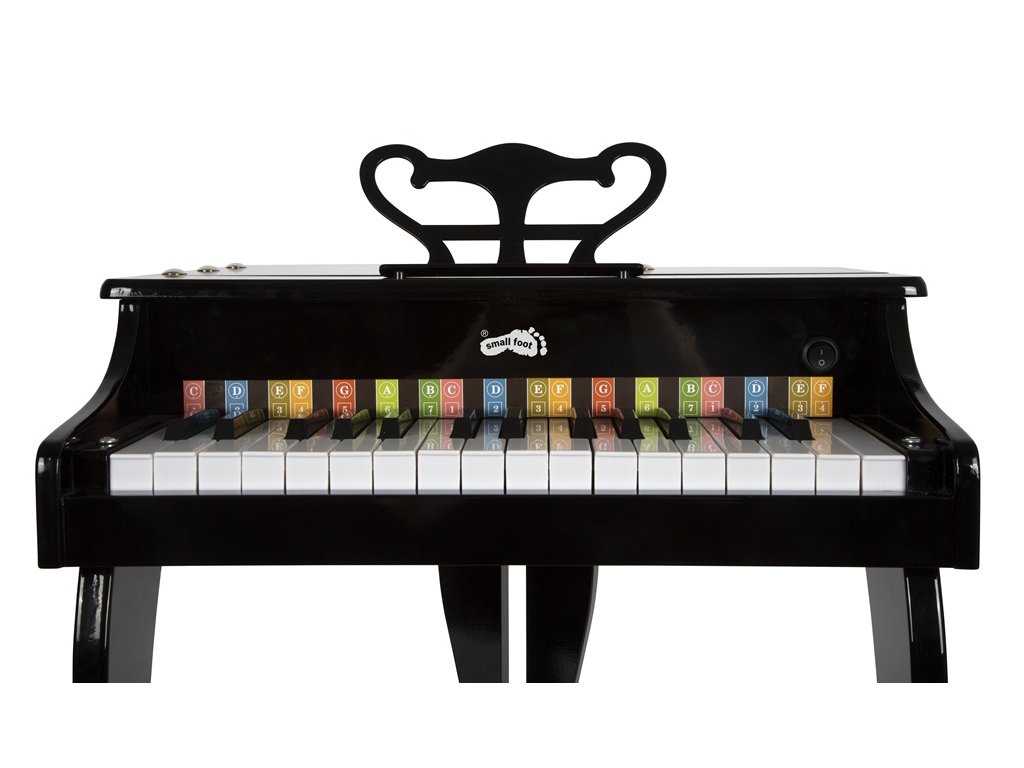 Máte doma malého hudebníka? Pořád si něco brouká, pohybuje se do rytmu hudby, má rytmus v krvi? Možná přišel čas na to, pořídit mu jeho první hudební nástroj. Toto elektronické dřevěné dětské klavírní křídlo v luxusním designu má výbornou kvalitu zvuku a víko lze otevřít stejně, jako u skutečného koncertního křídla. Součástí je pohodlná stolička pro malého klavíristu, stojánek na upevnění not a zpěvník. Noty ve zpěvníku jsou barevně rozlišené a jednotlivé klávesy jsou označeny odpovídajícími barevnými štítky, aby se dětem podle not snadno hrálo. Je potřeba dokoupit 4xAA baterie, které nejsou součástí balení. Nejedná se o hudební nástroj, ale pouze o hračku. Hlavní vlastnosti: luxusní designvýborná kvalita zvukusoučástí stolička, zpěvník a stojánek k upevnění not rozvíjí a podporuje lásku k hudbě 4xAA baterie - nejsou součástí baleníSizing info
