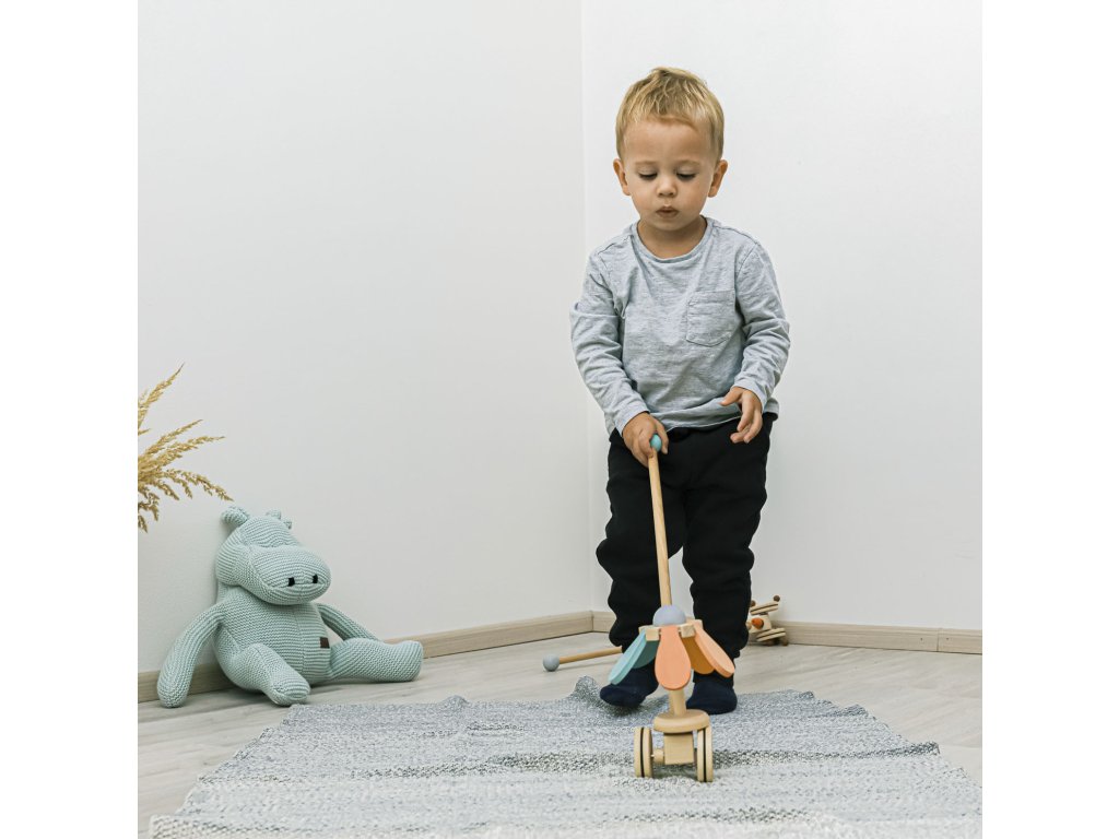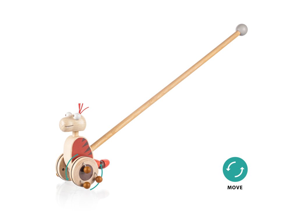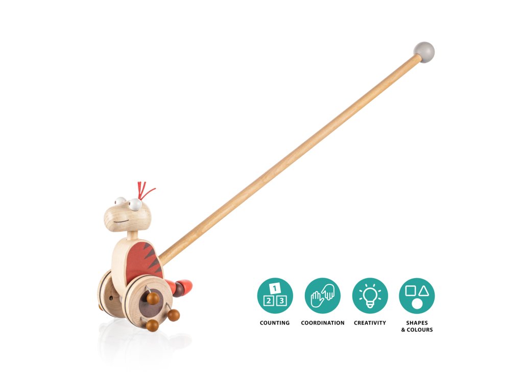 Pevná tyč navíc slouží jako opora při prvních dětských krůčcích a je na konci opatřena dřevěnou koulí pro větší bezpečnost. Jezdík nemá žádné ostré hrany a je vyroben z odolného dřeva s dlouhou životností.