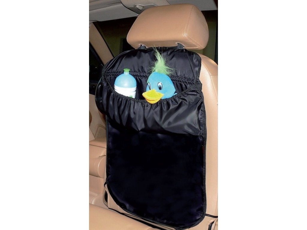 Ochrana opěradla před okopáním dětmi v autosedačkách a kapsář v jednom. Chránič opěradla se zapne za opěrku hlavy předního sedadla a ve spodní části se přichytí pomocí šňůrky. Rozměr 65 cm x 44 cm Složení materiálu 100% polyester, kvalitní materiál s voděodolnou úpravou. Praktické a jednoduché ošetřování Omyvatelný vlhkou tkaninou. Lze jej vyprat na 30°C v automatické pračce bez ždímání.Doplňkové parametry